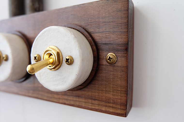Основание из твердой древесины черного ореха, защита поверхности от воскового масла, Материал бакелита, переключатель для латунного рычажного переключателя (сертификат 3c), мощность 10 А (Не используйте сверхмощный), защитная коробка-это керамический материал.