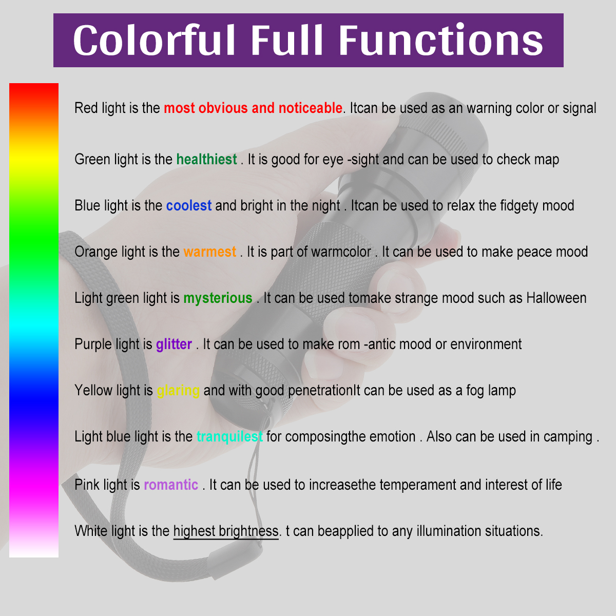 -Удобно и быстро, 2 кнопки для переключения цвета света фонарика, добавляя больше удовольствия и сюрприза в вашу жизнь.
