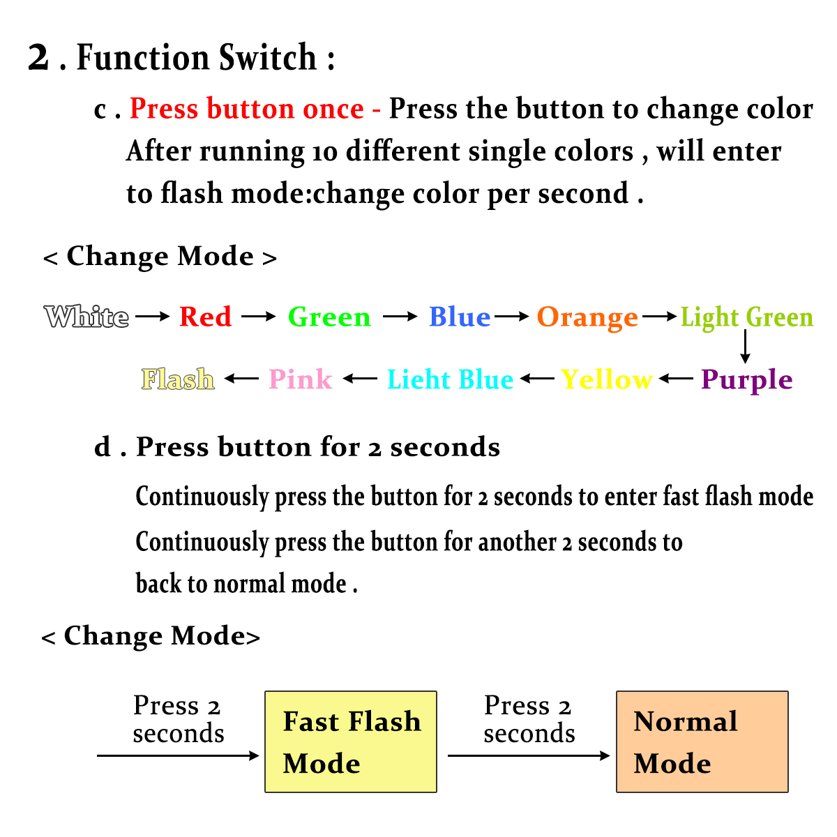 -Нажмите переключатель функций один раз, вы можете изменить цвет.
