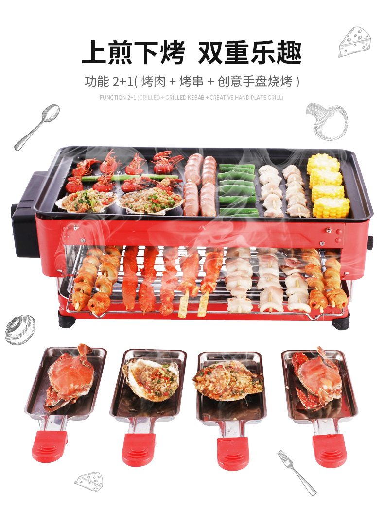 Электрический гриль бытовой антипригарный Электрический противень для выпечки бездымного барбекю машина для внутреннего мяса электрические грили электрические противни