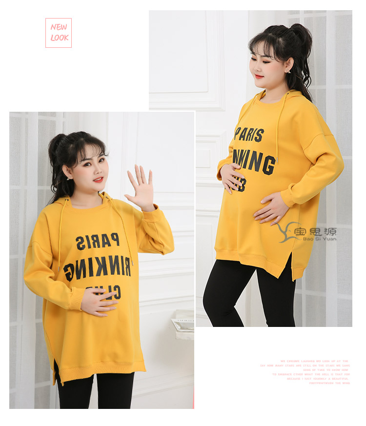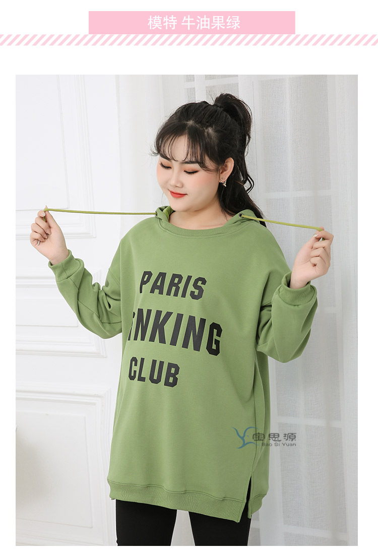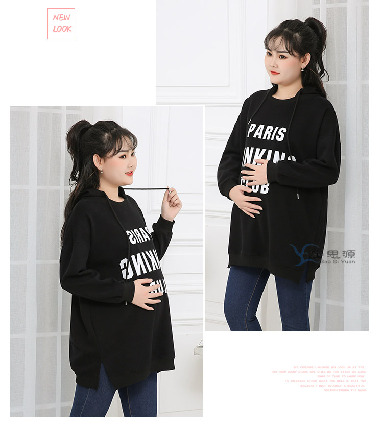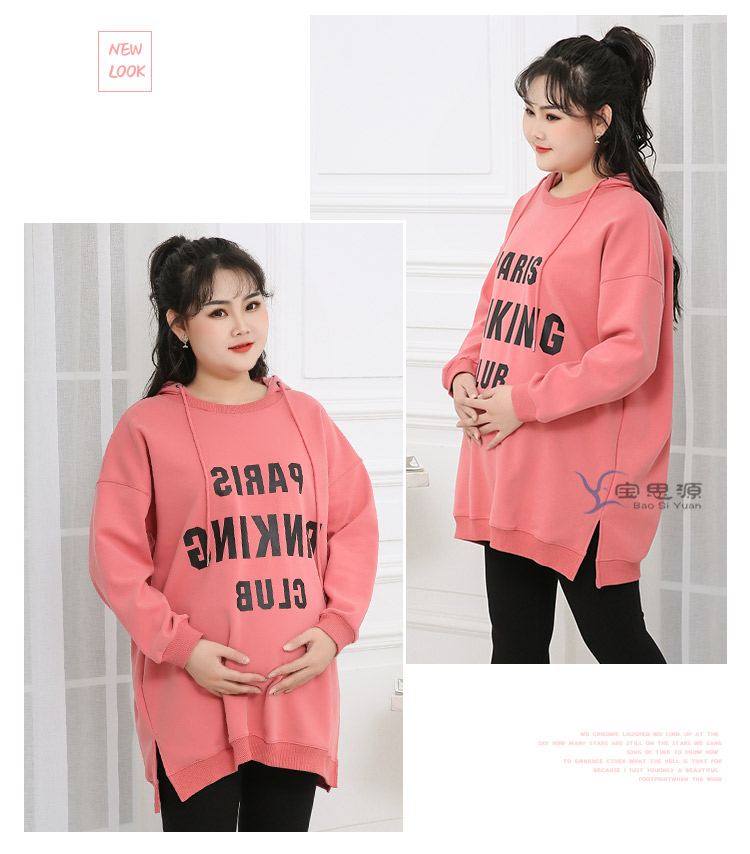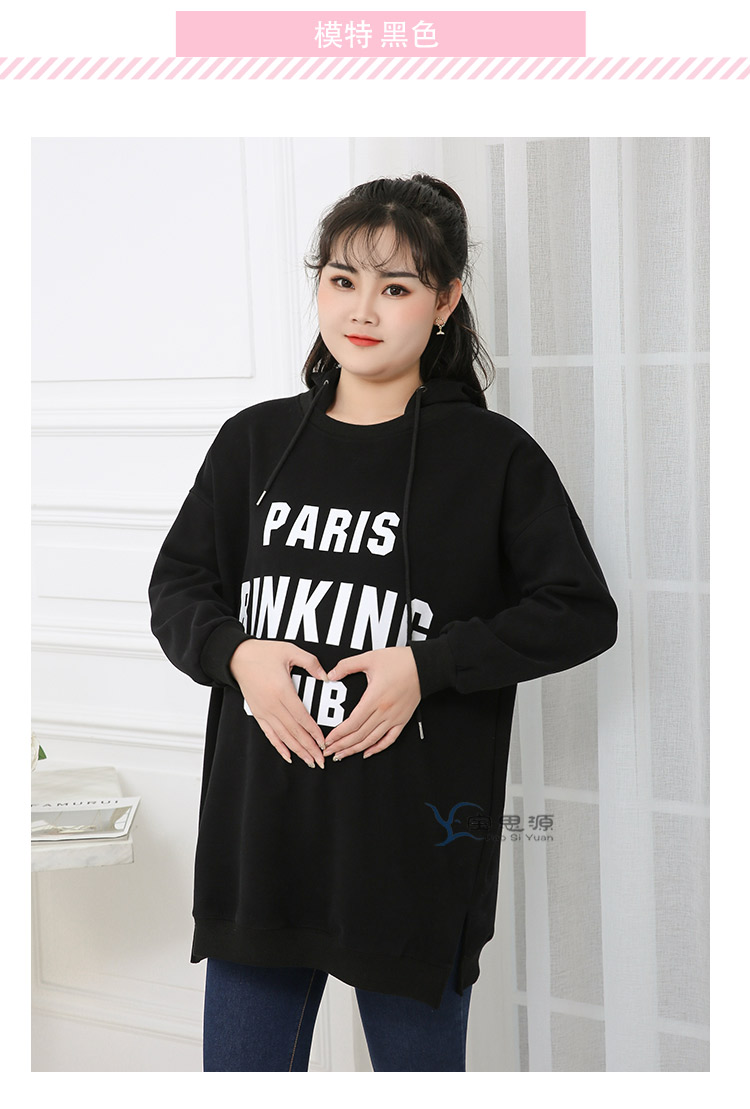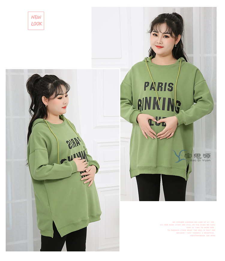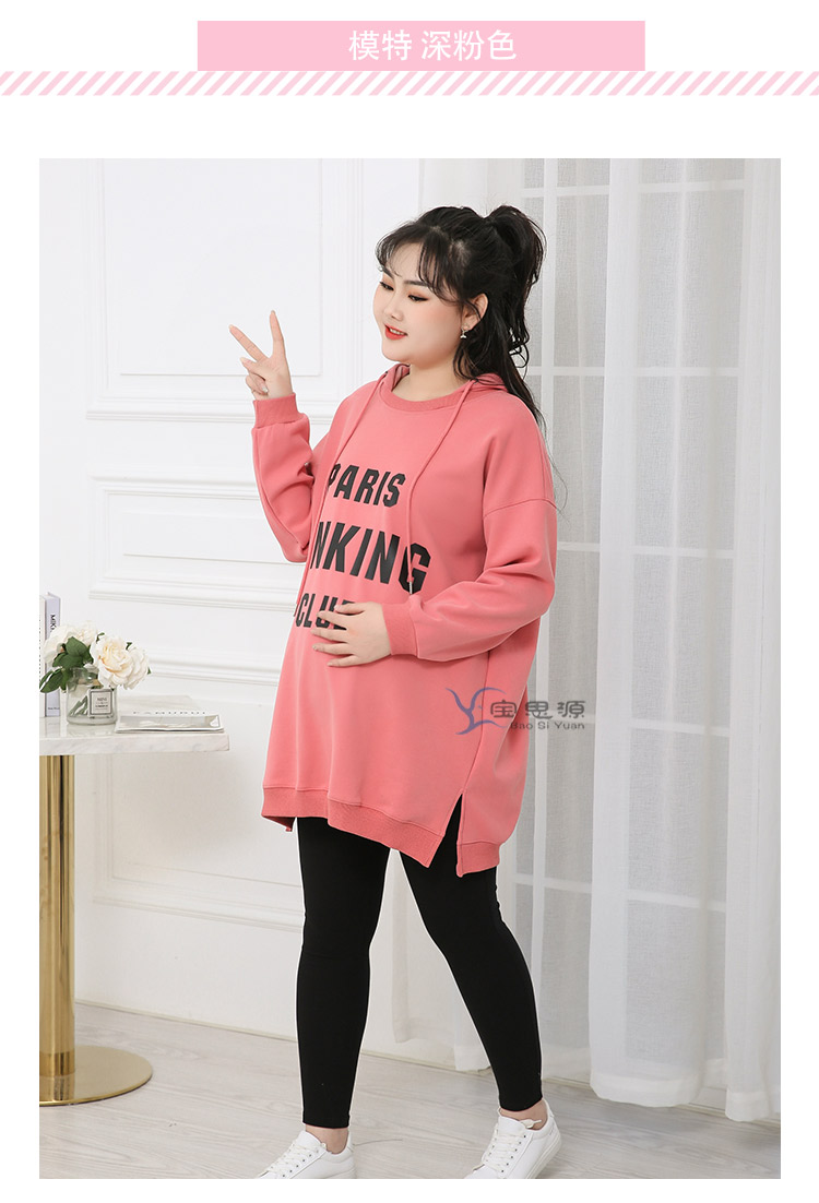 Толстовка с капюшоном больших размеров d, толстовки для мам, свитер для беременных, длинный УТЕПЛЕННЫЙ ТОП С буквенным принтом, повседневный Свободный корейский стиль, большой размер 6XL, осень