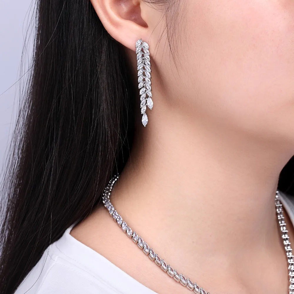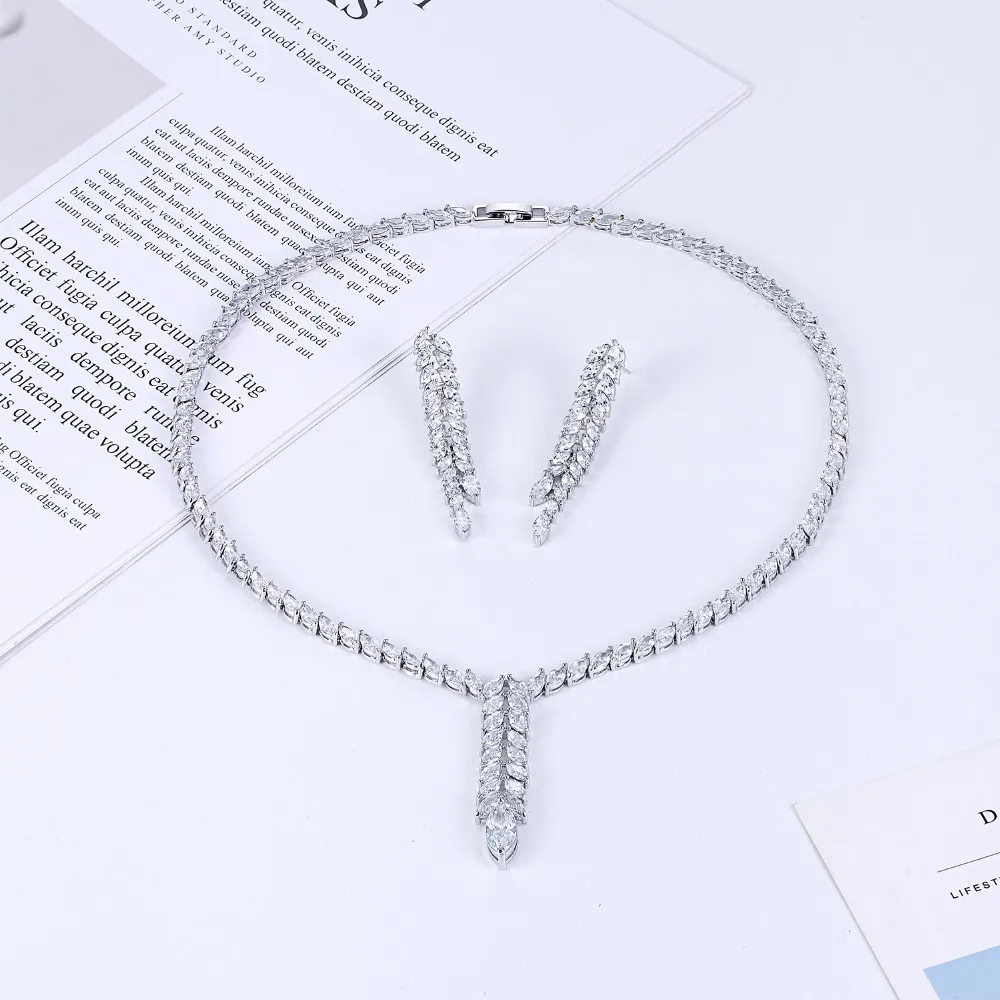 Описание: высокое качество CZ ожерелье и сережки наборы, сделанные микро-проложить и покрытие с реальной платиной, сделанные с 5А небольших кубических Цирконий.
