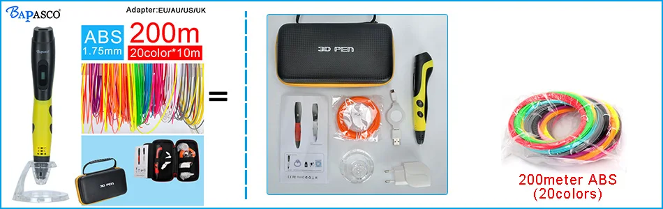 2018 оригинальная Bapasco BP-04 3D Ручка + 200 метров (20 цветов) ABS DC 5 V 2A USB зарядка 3D печать Ручка детский Лучший образовательный подарок
