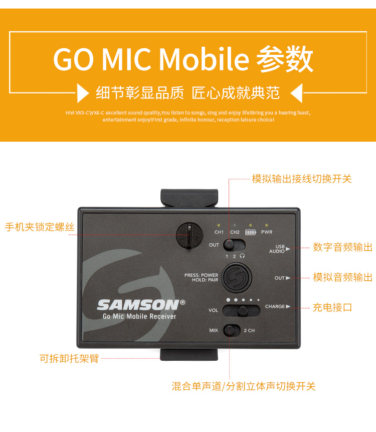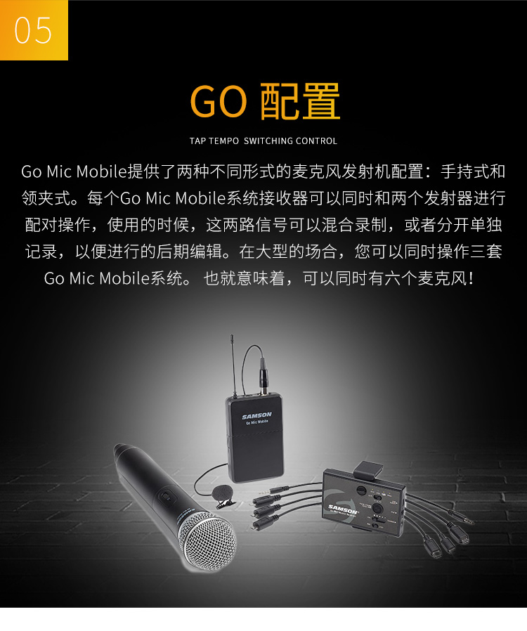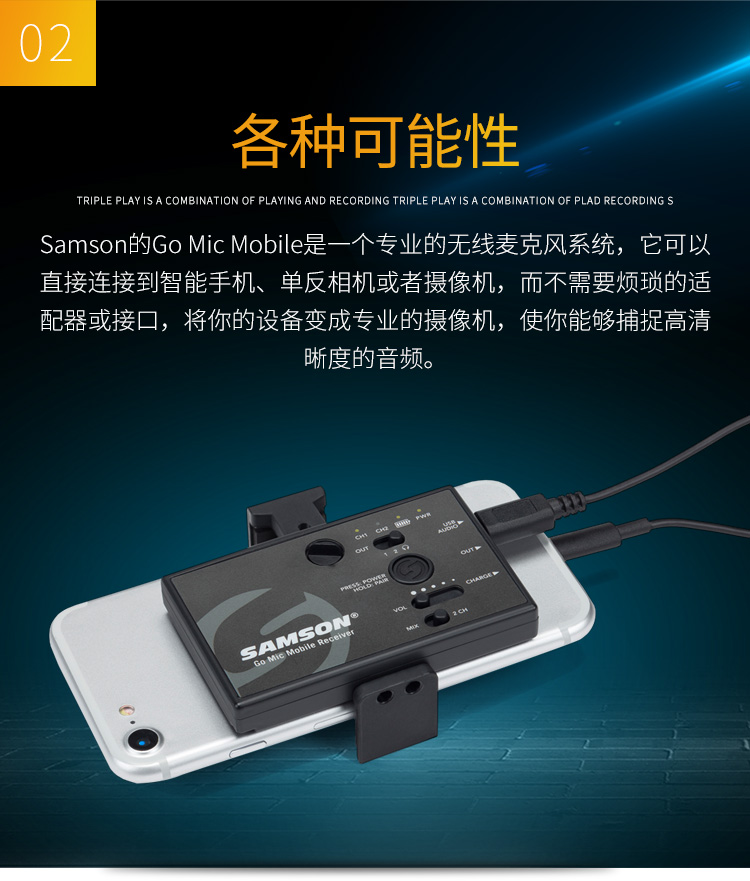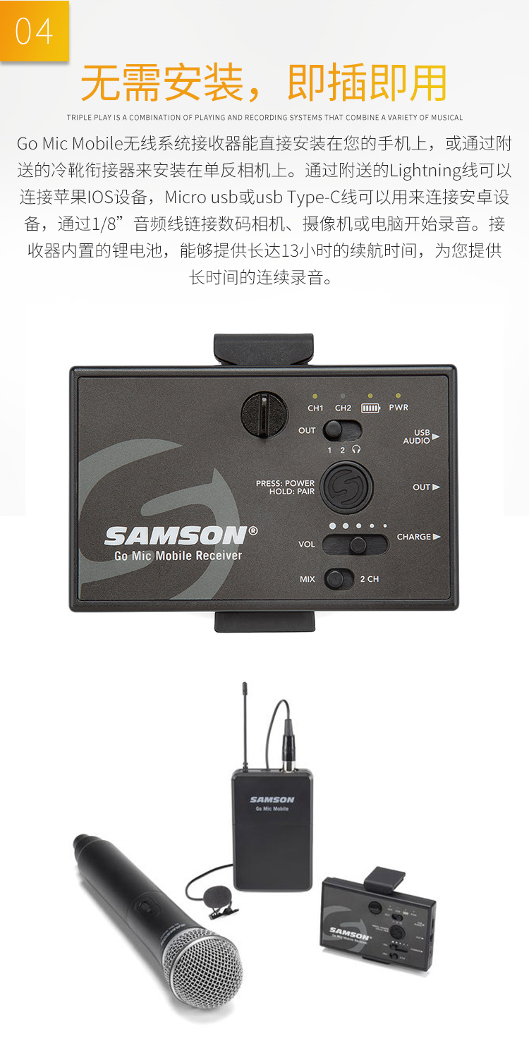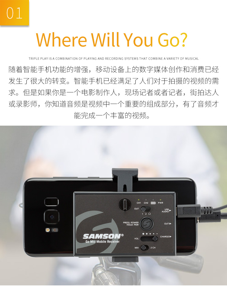 Самсон;Go Mic Mobile®Является первой в мире профессиональной системой беспроводного микрофона для смартфонов, позволяет мобильным фильмам/журналистам снимать невероятное аудио где угодно. Go Mic Mobile® подключается непосредственно к iOS и Android * устройств, так что вы можете начать снимать с высококачественным аудио почти сразу.