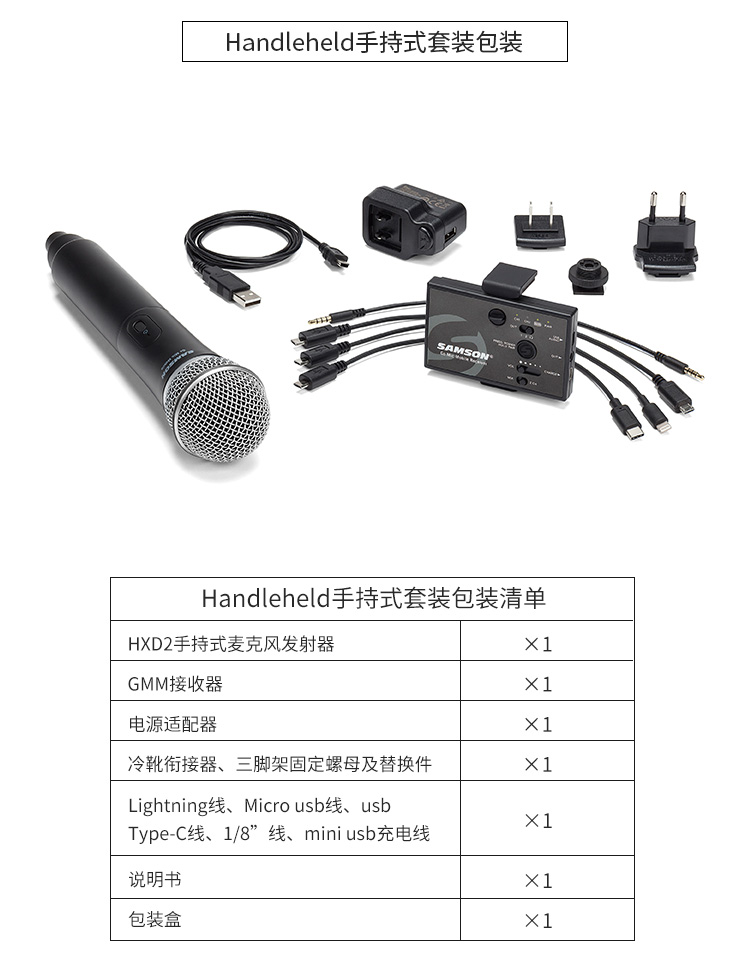 В дополнение к Go Mic Mobile® (GMM) приемник, уникальный настроенный микрофон Mobile® ручной беспроводной системы ОсобенностиСамсонHXD2 портативный передатчик с Q8 профессиональным динамическим микрофонным капсулом для до 100' несжатой цифровой беспроводной операции. HXD2 также предлагает СМЖЛ (автоматический контроль усиления) и внутреннее ограничение для обеспечения того, чтобы вы всегда имели максимально четкий звуковой сигнал.