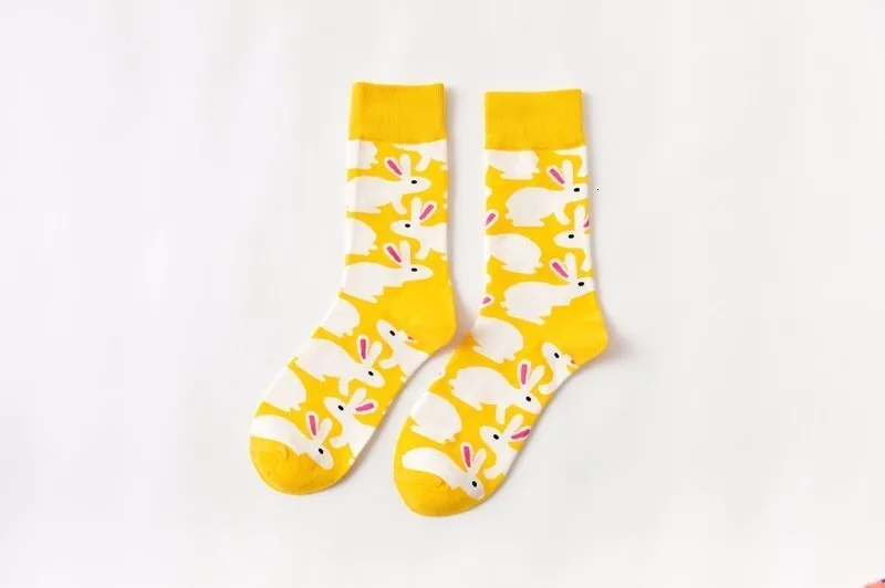 V-Hanver, жаккардовые/Растительные принты, искусство, унисекс, чулочно-носочные изделия, животные/носки с изображением кролика, забавные носки Kawaii Sokken For ChIristmas подарок