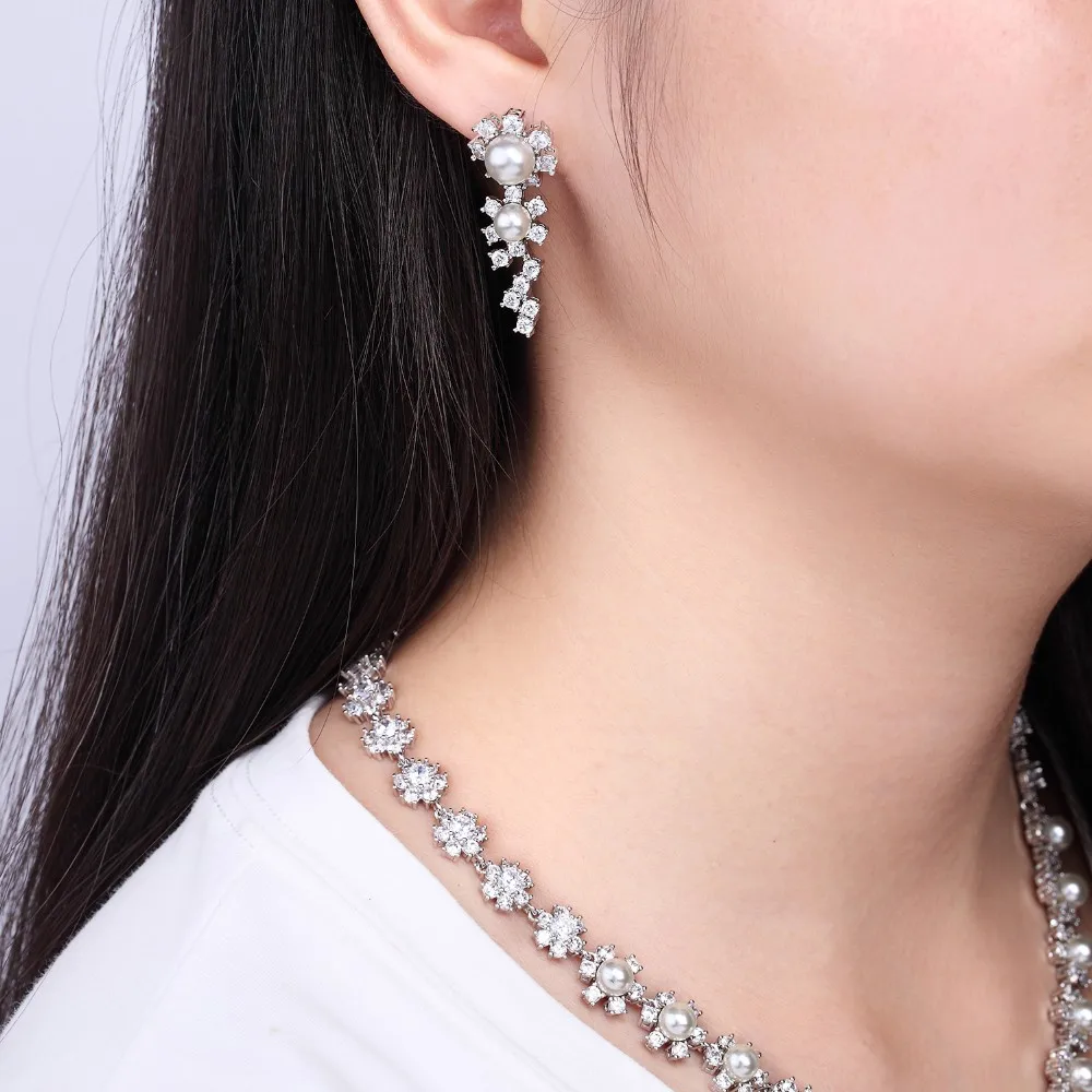 Описание: высокое качество CZ ожерелье и сережки наборы, сделанные микро-проложить и покрытие с реальной платиной, сделанные с 5А небольших кубических Цирконий, жемчуг искусственный жемчуг, а не пластиковые бусины