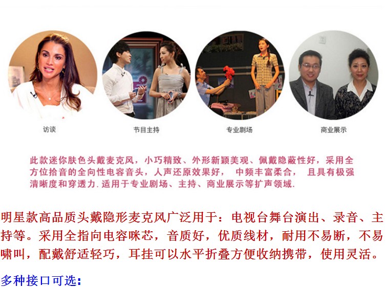 Мини невидимая гарнитура с крючком Параметры продукта: Модель: Q-F12 Размер сердечника микрофона: и пустой; 4 мм Направленность: всенаправленный Чувствительность: -32 дБ ± 2 дБ Частотная характеристика: 80 ~ 20000 Гц Выходное сопротивление: ≤ 2.2K0 Рабочее напряжение: 2,0 V ~ 10V DC Отношение сигнал-шум: ≥ 88 дБ Общая Длина шнура: 1,2 м Особенности ● Профессиональный качественный эффект пикапа, подходит для тех, кто не может держать микрофон во время работы. ● Красивый внешний вид, светильник вес, прочный пластик и простых в использовании. ● Управляемая звуковая панель, пользователи могут носить радио головку влево или вправо. ● Удобная, стабильная и надеваемая на голову конструкция для удобного складывания и удобной переноски. ● Звук милый, подходит для выступлений на сцене, обучающих встреч и т. д. Этот мини-микрофон для гарнитуры небольшого и изысканного тона, с новым и красивым внешним видом и хорошим сокрытием. Он принимает всенаправленную конденсаторную капсулу с всенаправленным звуком. Он обладает хорошим вокальным восстановительным эффектом, насыщенной и мягкой промежуточной частотой, высокой четкостью и проникновением. Он подходит для усиления звука в области профессиональной драмы, размещения, коммерческого дисплея и т. д. Высококачественные невидимые микрофоны знаменитостей широко используются в: театральные представления ТВ-станции, запись, размещение и т. Д. С помощью всенаправленного конденсаторного микрофона, хорошее качество звука, провод высокого качества, прочный и не легко сломать, не легко свистеть, удобный и износостойкий светильник, Ушные крючки можно сложить Горизонтально для хранения и переноски, гибкое использование.