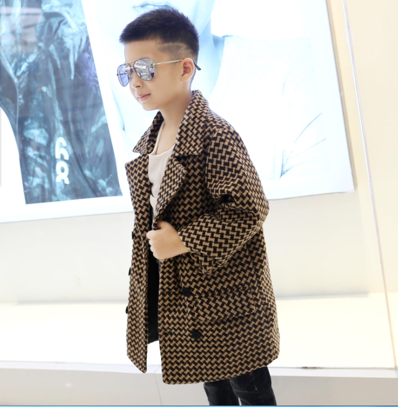 Осенне-зимнее модное шерстяное пальто для мальчиков стеганое хлопковое утепленное шерстяное пальто с гусиной лапой новая Корейская версия