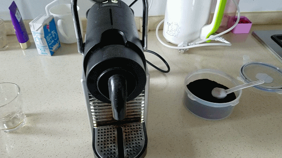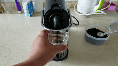 2.Откройте оригинальную капсулу Nestle, удалите внутреннюю часть кофейного порошка, а затем в капсулы из нержавеющей стали.