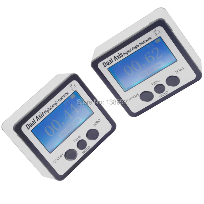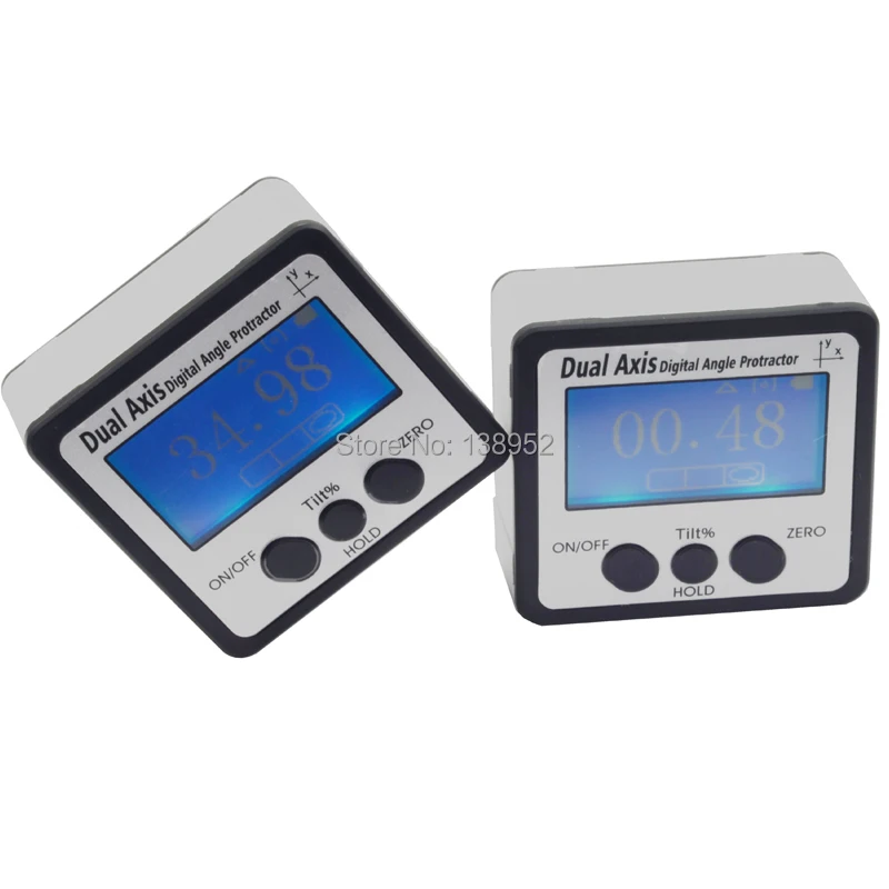 Dual and single axis with user friendly LCD display angle. With backlight A variety of styles can be selected (metal single-side, metal three-sides, aluminum frame) to meet the needs of different occasions Automatic power off in three minutes when you don't use it. It can save power and extending battery life. Biaxial measurement in horizontal and vertical directions Measuring plane containing disk magnets can stick to the surface to be measured. Portable size ,convenient to co-work with other measuring tools and enlarge measuring range. Quick display of the measured value on big LCD screen. Reversible reading allows right side up display Relative-absolute measurement interchange at any position. Use for angle measurement in automotive, woodwork, building, drilling machinery, etc