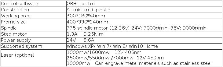 Наборы 3 :CNC 3018pro + адаптер питания США/ЕС + 10 шт. резцов + ER11 + 1000 МВт лазер