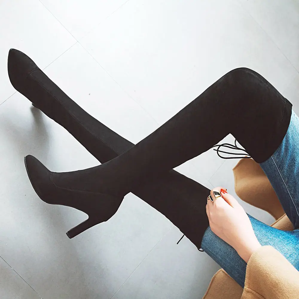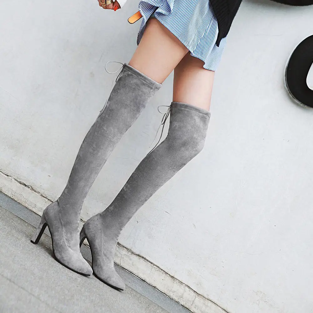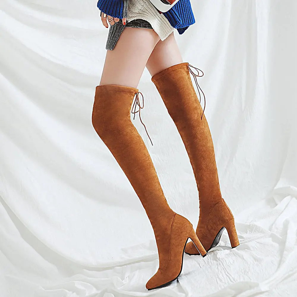 Lasyarrow/Брендовая обувь; женские сапоги до бедра на шпильке; пикантные Сапоги выше колена на шнуровке; эластичные сапоги на высоком каблуке; Botas; J24