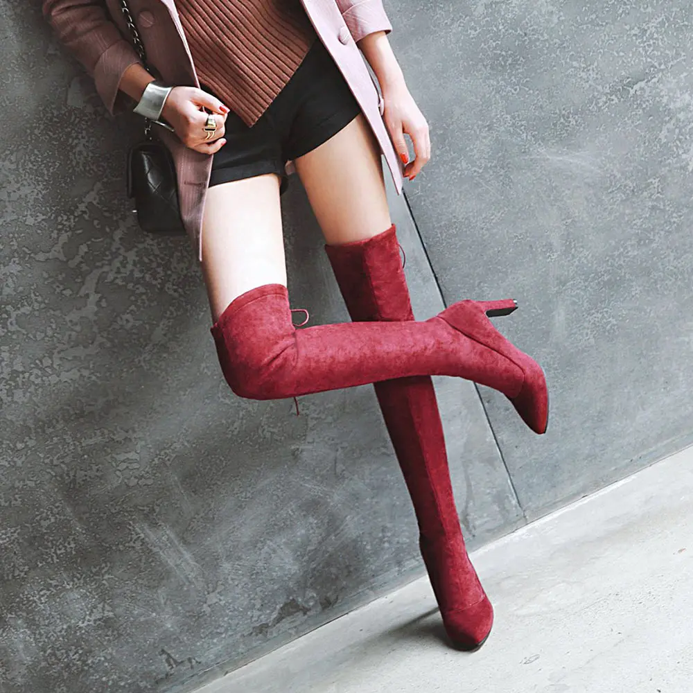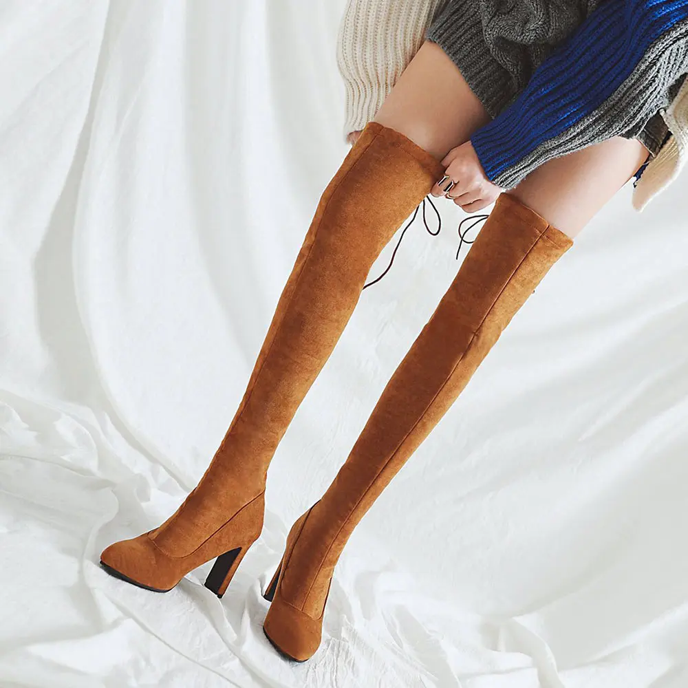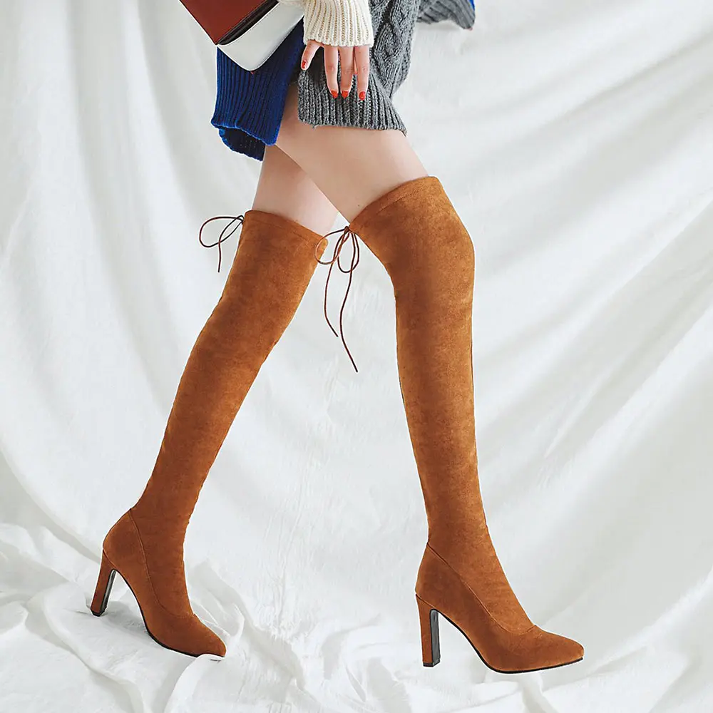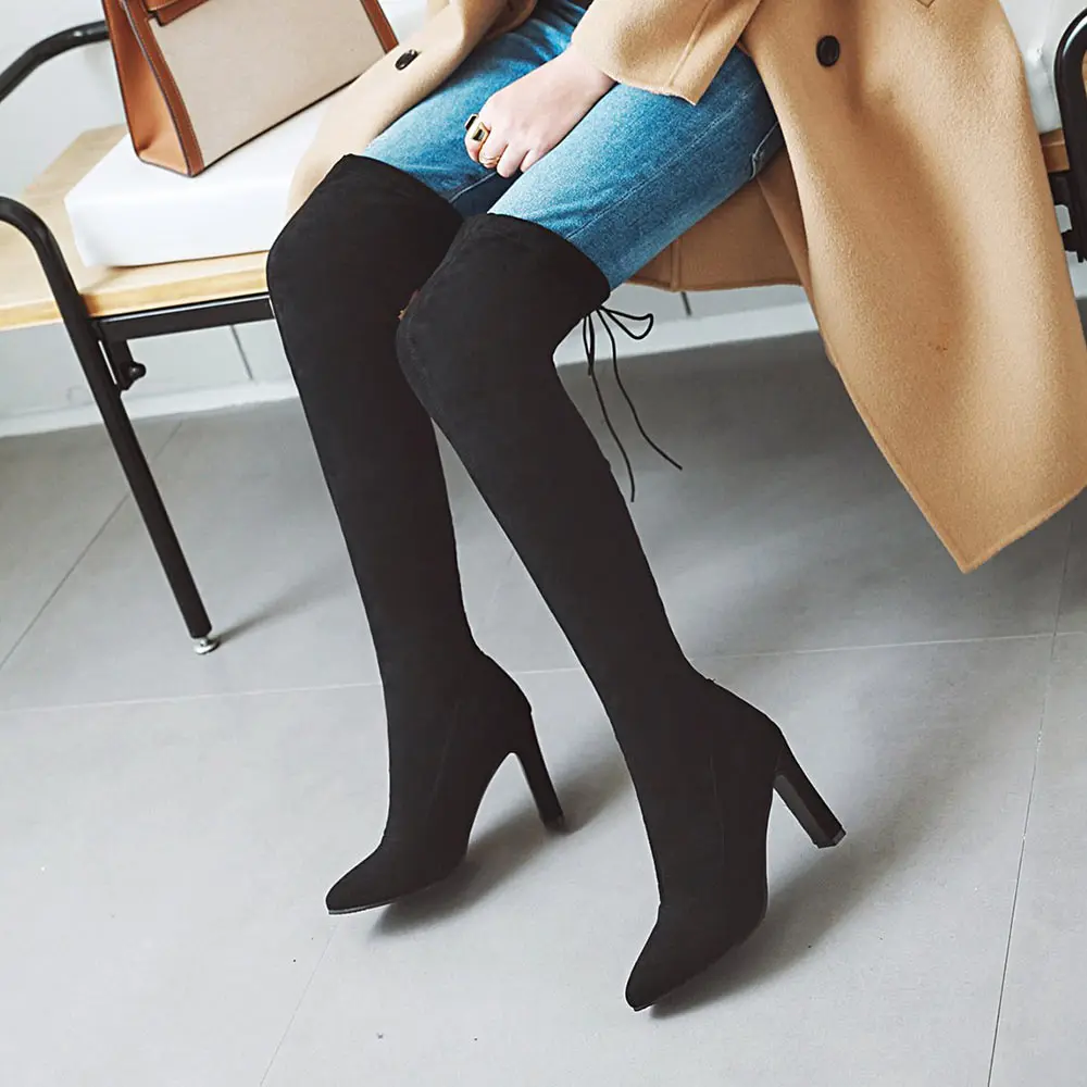 Lasyarrow/Брендовая обувь; женские сапоги до бедра на шпильке; пикантные Сапоги выше колена на шнуровке; эластичные сапоги на высоком каблуке; Botas; J24