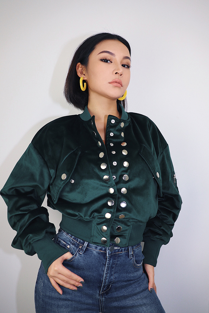 Базовая зеленая черная бархатная куртка-бомбер и пальто, женская байкерская куртка с карманами на пуговицах, толстая верхняя одежда, осенне-зимнее повседневное пальто