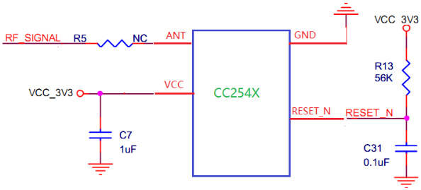 Примечание: модуль по умолчанию подходит для антенны PCB. Если требуется внешняя антенна, индуктор, подключенный к антенне PCB, необходимо Переключить на внешний порт антенны.