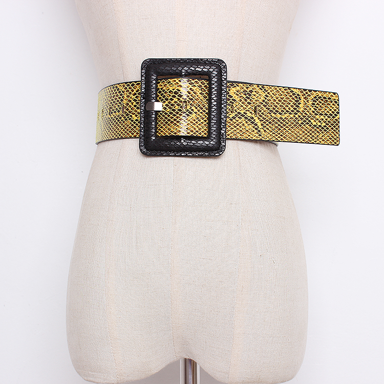 Красочная змея кожа поясной ремень Мода Пряжка шпилька для женщин широкий пояс пальто пояс корсет для женщин шоу платье пояс