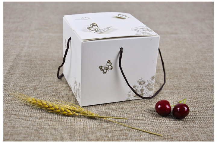 20 шт./лот, большие белые подарочные картонные коробки, квадратная Подарочная коробка с бабочкой и ручкой, упаковка Макаронного печенья, коробка для торта