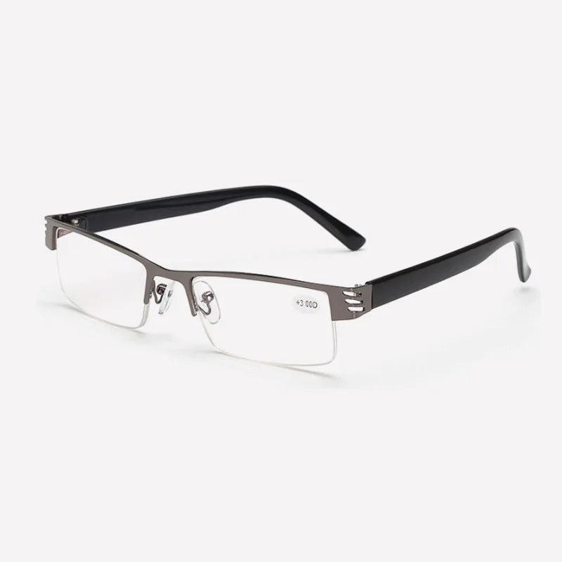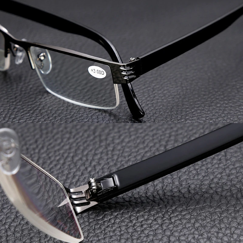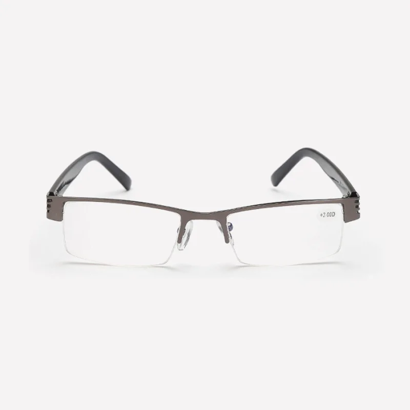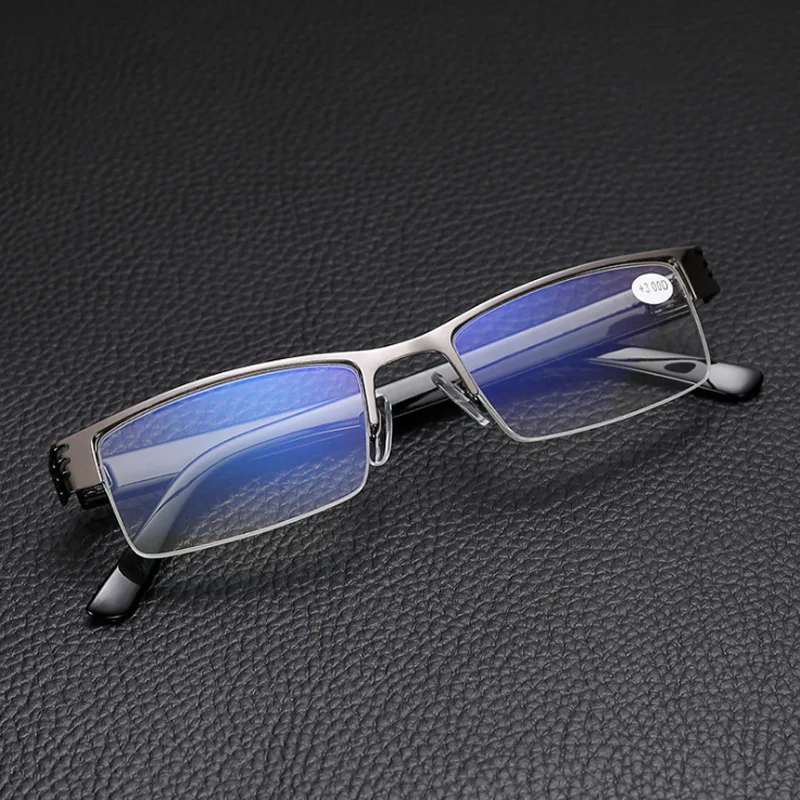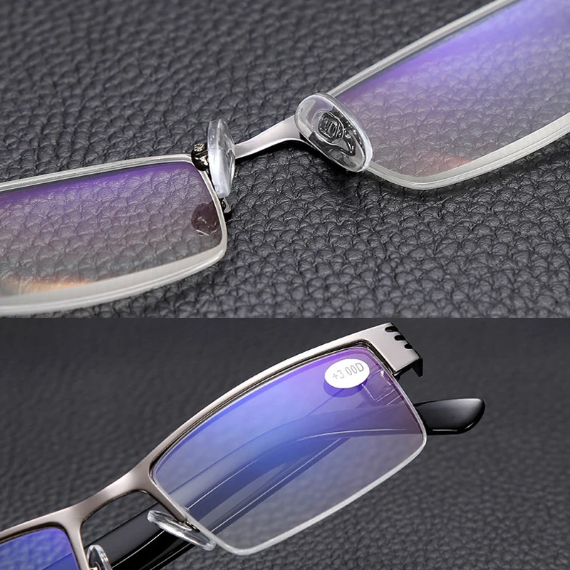 1 x синяя пленка смолы очки для чтения Для мужчин Для женщин Для мужчин металл с плоскими стеклами и половинной рамкой дальнозоркости очки + 1,0 1,5 2,0 2,5 3,0 3,5 4,0 диоптрий