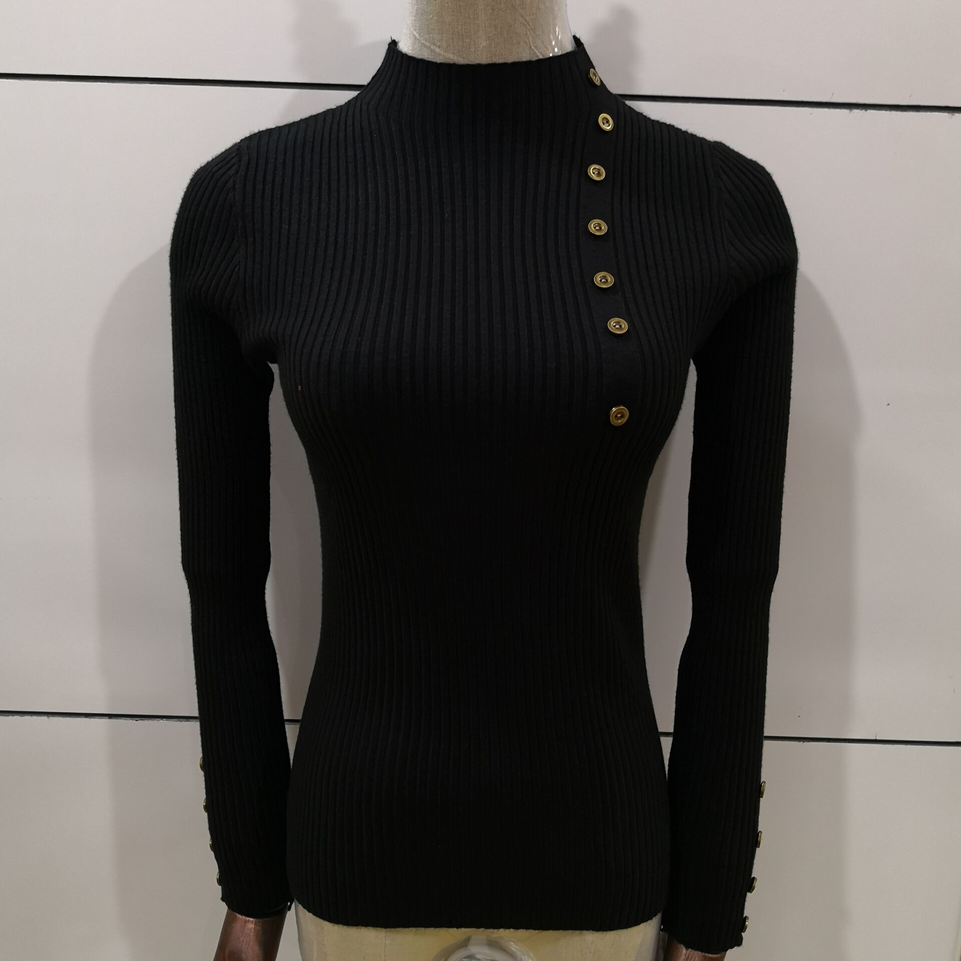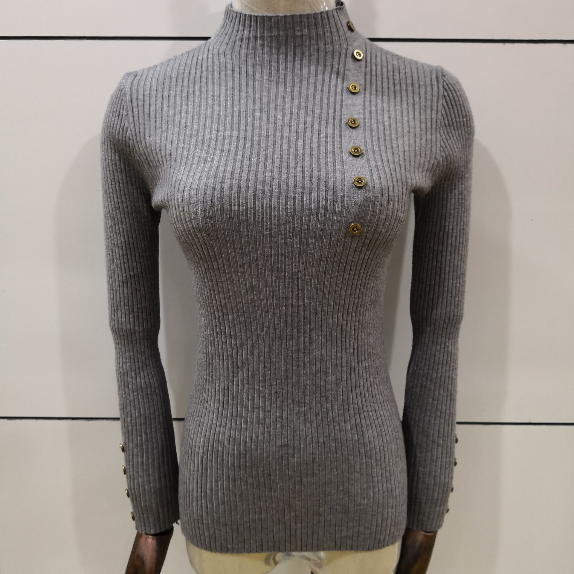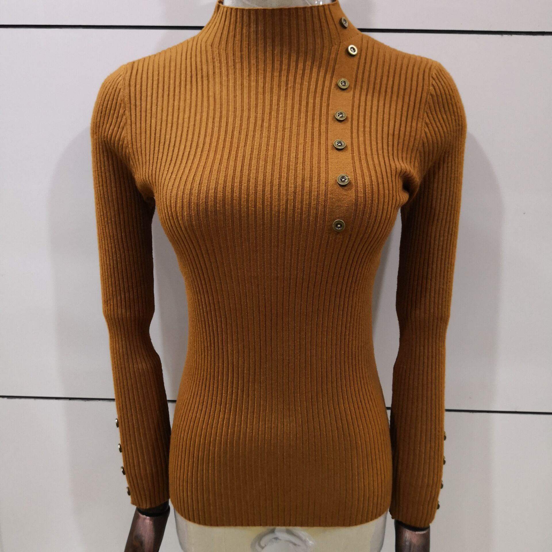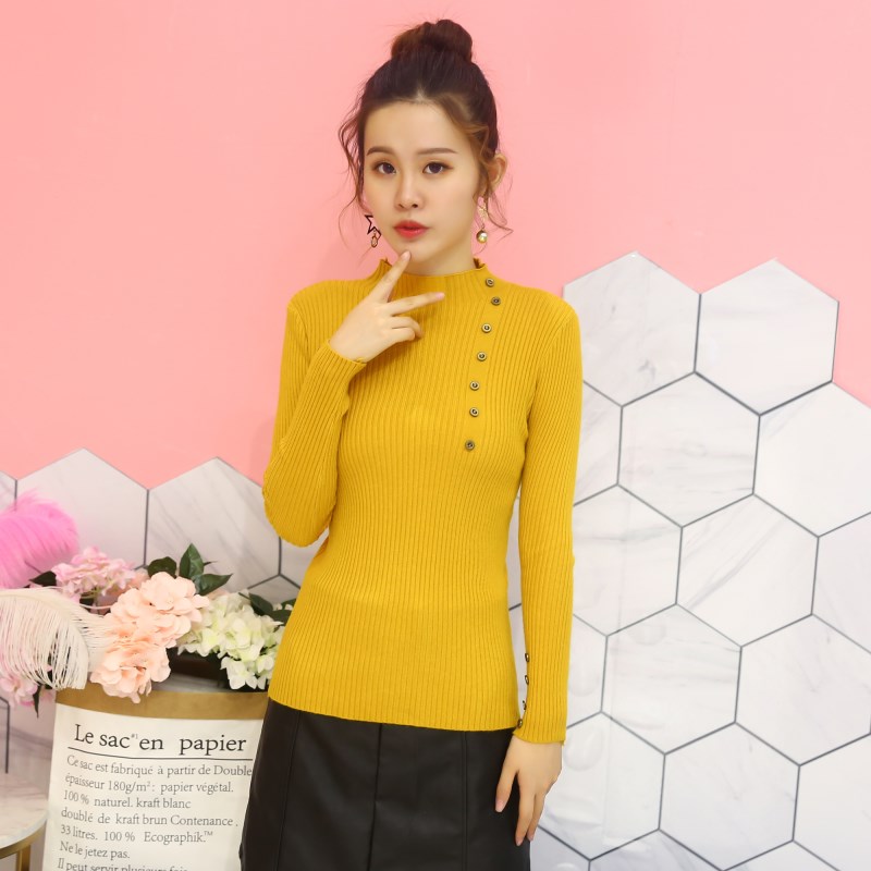 Новинка 2020, осенне-зимний женский свитер с высоким воротником, длинный рукав, пуловер с пуговицами, джемпер, женский свитер, вязаный Топ, Pull Femme