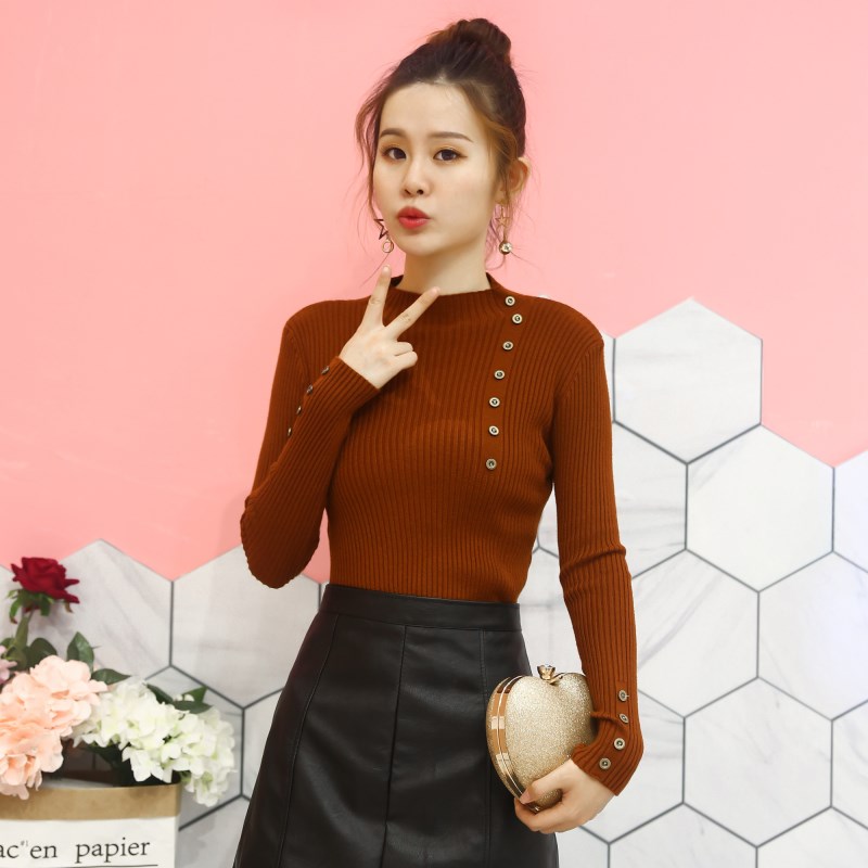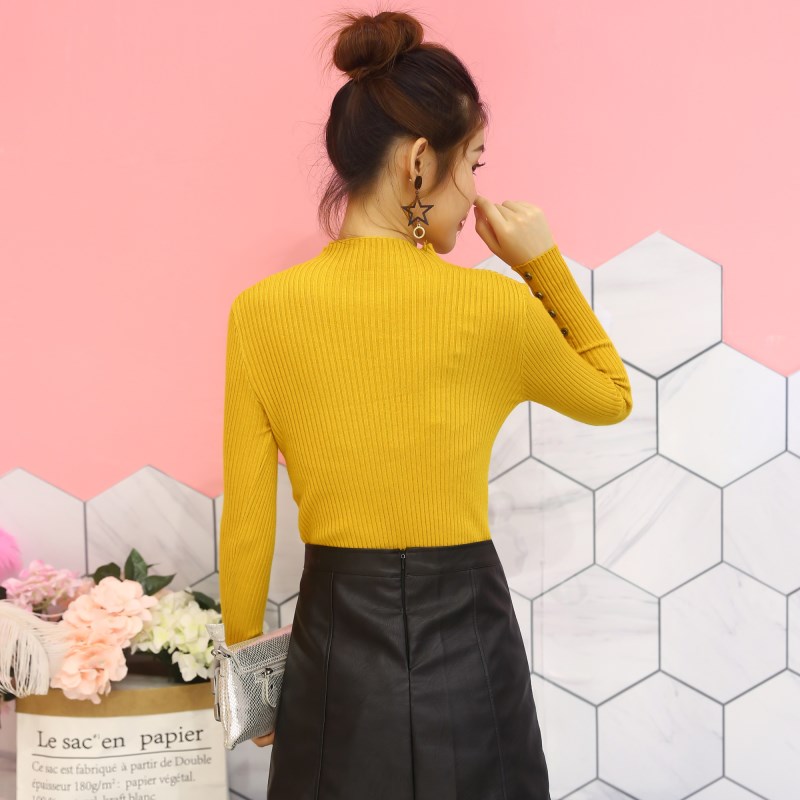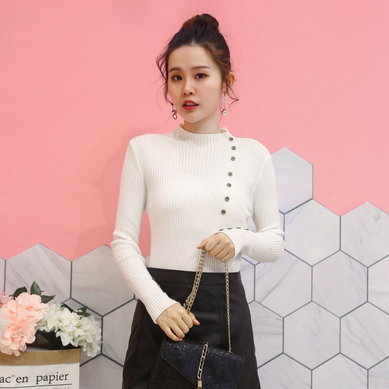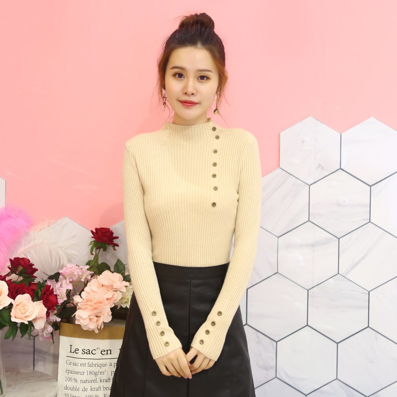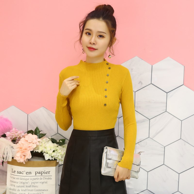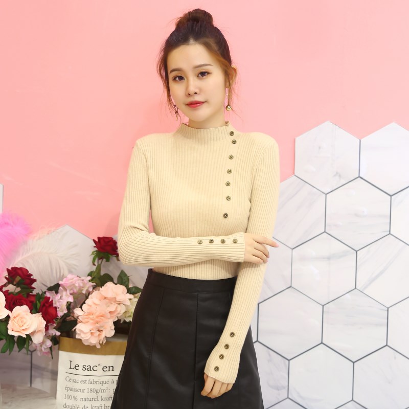 Новинка 2020, осенне-зимний женский свитер с высоким воротником, длинный рукав, пуловер с пуговицами, джемпер, женский свитер, вязаный Топ, Pull Femme