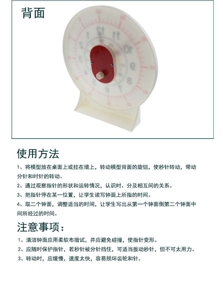 24 Hour System Plastic Clockface Models Hour Hand Minute Second Hand Three Needle Linkage Clock Surface Model Math Clock Aids