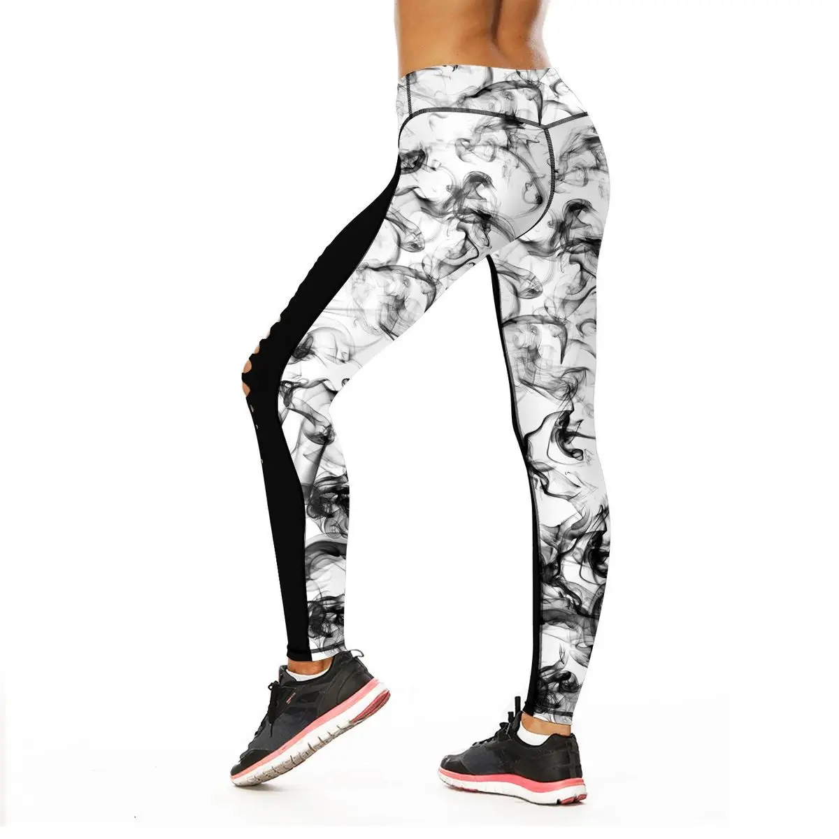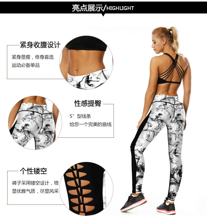 Костюм для йоги с принтом «черный дым», короткий жилет для коллекции, костюм с эластичными штанами на бедрах.
