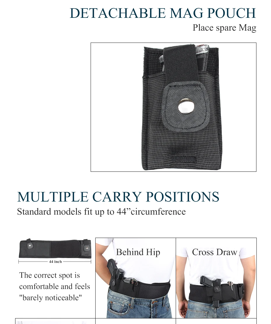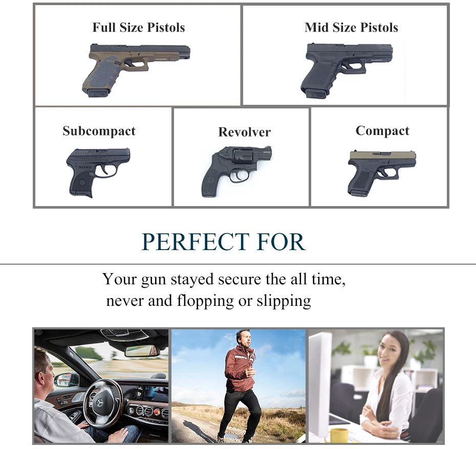 【Универсальный фит】Bellyband чехол подходитМаленькие компактные, компактные и даже полноразмерные пистолеты и револьверы. Подходит для большинства обычных ручных пистолетовGlock 19, 23, 38, 25, 32, 26, 27, 29, 30, 39, 28, 33, 42, 43, 36, Smith and Wesson, Bodyguard, M & P Shield, Sig Sauer, Ruger, Kahr, Beretta, Springfield, aurus, Kimber, Rock Island, Bersa, Kel Tec, Walther и многое другое.