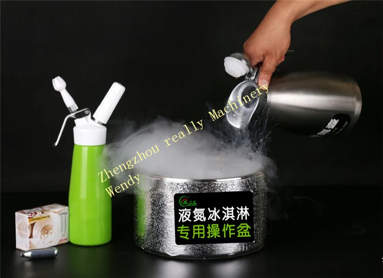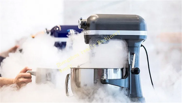 Машина для производства жидкого азотного мороженого, машина для производства мороженого с миксером 5L1. Жидкое азотное мороженое является рецептом молекулярного приготовления, изменяя свойства пищи с жидким азотом при температуре минус 200 градусов Цельсия, чтобы сделать мороженое почти мгновенно.