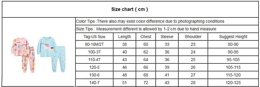 Таблица размеров для детей (единица измерения: см)