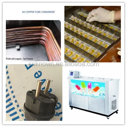 Передовые технологии коммерческое мороженое палочка для леденцов делая машину СпецификацияМодельKN-06BРазмеры1630*695*1375 ммЁмкость26000-28000 шт/деньВес нетто320 кгХладагентR22/R404AПередовые технологии коммерческое мороженое палочка для леденцов делая машину основные особенности1) привлекательный внешний вид, прост в эксплуатации2) Герметичная крышка и длительное использование материала.3) применяется конструкция из нержавеющей стали, выглядит хорошо и долговечно4) эффективная система водяного охлаждения или воздушного охлаждения на выбор.5) Различные формы на выбор, могут сделать различные формы и вкусы мороженого.Подробные изображенияПередовые технологии коммерческое мороженое палочка для леденцов делая машину операции шаги1. Положите чистую воду, затем положите морскую соль (содержание 3:1)