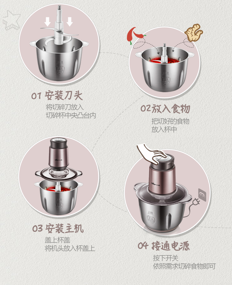 Бытовая электрическая мясорубка из нержавеющей стали Minced Мясорубка 2L овощи еда шлифовальные станки 220 В детская еда Миксер для пищевых добавок