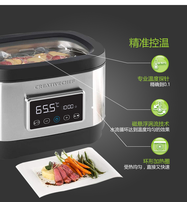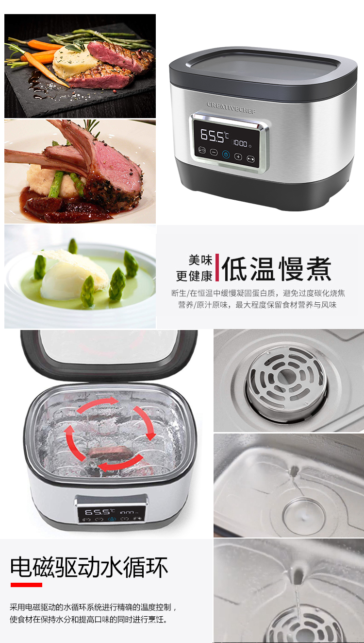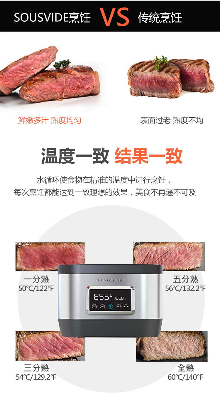 1. уменьшить потерю воды: вакуумная низкая температура приготовления пищи, потеря воды только между 5% ~ 8%, еда более нежная.