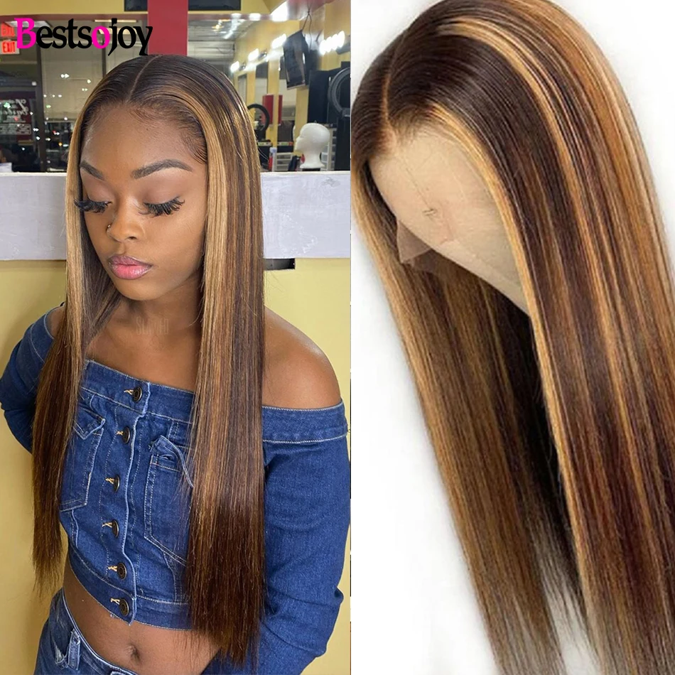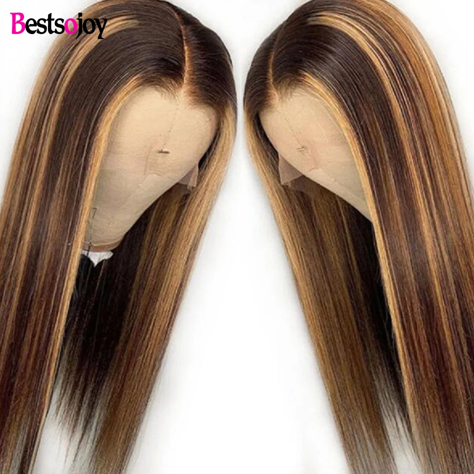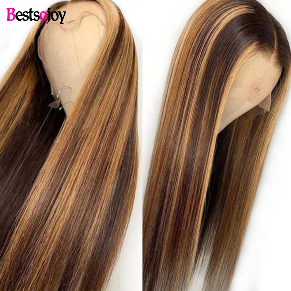 Bestsojoy 13х6 парик из натуральных волос на кружеве, прямые волосы, медовый блонд, коричневый, 360 кружевной передний парик, предварительно выщипанный Remy для женщин