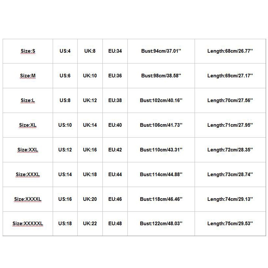 Size US UK EU Bust Length S 4 8 34 94cm/37.01'' 68cm/26.77'' M 6 10 36 98cm/38.58'' 69cm/27.17'' L 8 12 38 102cm/40.16'' 70cm/27.56'' XL 10 14 40 106cm/41.73'' 71cm/27.95'' XXL 12 16 42 110cm/43.31'' 72cm/28.35'' XXXL 14 18 44 114cm/44.88'' 73cm/28.74'' XXXXL 16 20 46 118cm/46.46'' 74cm/29.13'' XXXXXL 18 22 48 122cm/48.03'' 75cm/29.53'' Size:S US:4 UK:8 EU:34 Bust:94cm/37.01'' Length:68cm/26.77'' Size:M US:6 UK:10 EU:36 Bust:98cm/38.58'' Length:69cm/27.17'' Size:L US:8 UK:12 EU:38 Bust:102cm/40.16'' Length:70cm/27.56'' Size:XL US:10 UK:14 EU:40 Bust:106cm/41.73'' Length:71cm/27.95'' Size:XXL US:12 UK:16 EU:42 Bust:110cm/43.31'' Length:72cm/28.35'' Size:XXXL US:14 UK:18 EU:44 Bust:114cm/44.88'' Length:73cm/28.74'' Size:XXXXL US:16 UK:20 EU:46 Bust:118cm/46.46'' Length:74cm/29.13'' Size:XXXXXL US:18 UK:22 EU:48 Bust:122cm/48.03'' Length:75cm/29.53''