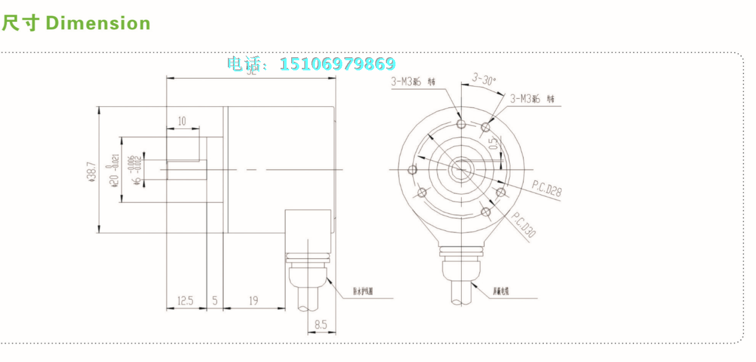 Outer diameter 38mm, journal 6mm, new high precision, high pulse, high protection level, photoelectric incremental rotary encoder 20000 pulse 20000 line Beautiful appearance Precision precision high quality process.