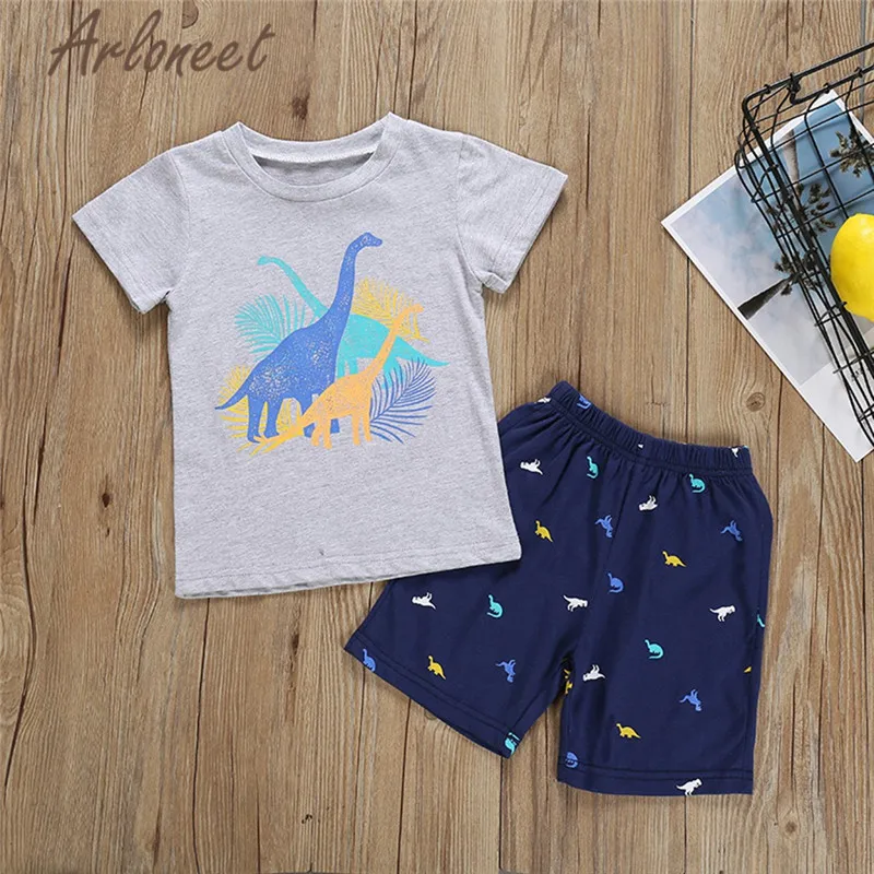 ARLONEET Clothes baby boy cartoon T shirt funny Dinosaur print top shorts beach shirt for boys 2pcs 2019 Summer baby boy Outfits