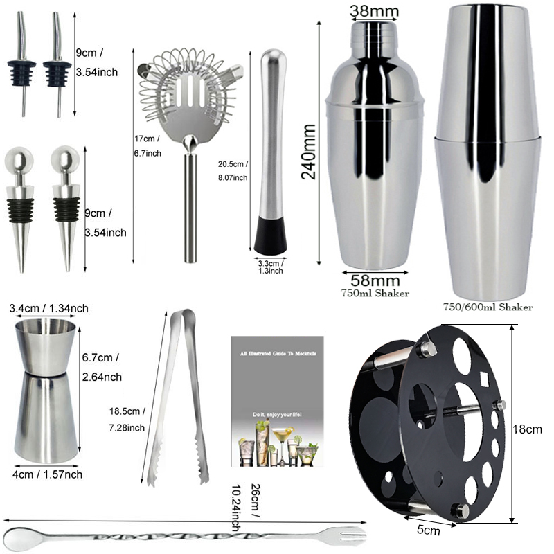 750/600/450 мл Нержавеющая сталь 12 шт. шейкер бар, набор вина мартини Миксер для напитков шейкер Бостонского стиля для вечерние панели инструментов