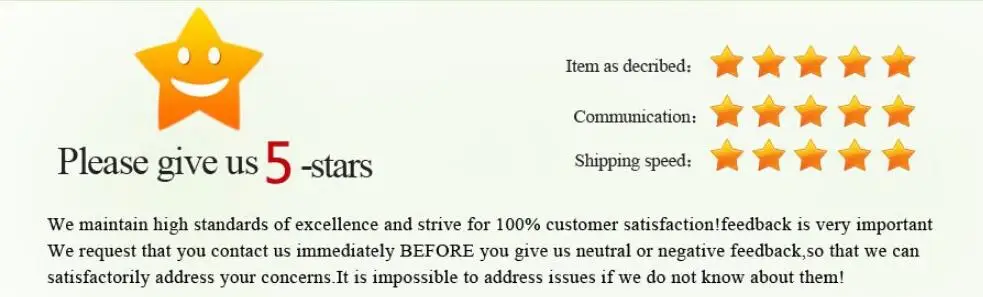 3. Если вы не удовлетворены товарами или нашим обслуживанием, пожалуйста, свяжитесь с нами, прежде чем оставить отзыв, мы немедленно решим проблему, спасибо!