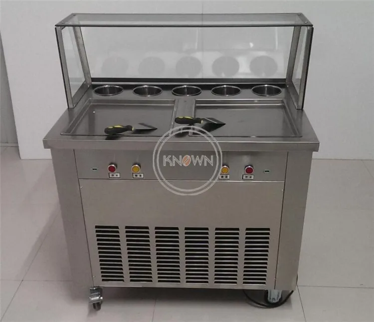 Жареное мороженое мгновенный охлаждающих плит frozen maker машина Название:Витрина для шкафа Особенности:Есть четыре колеса в витрине, что делает машину более удобной для перемещения, экономит время и силы, и красиво и модно.