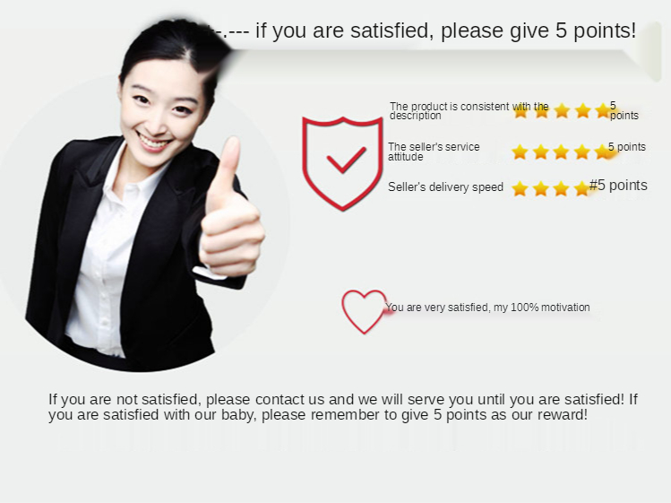 6.收到您拍下的宝贝后,如果您对宝贝及服务还满意,那么请您给一个好评,您的好评会是店主不断努力的动力,谢谢!