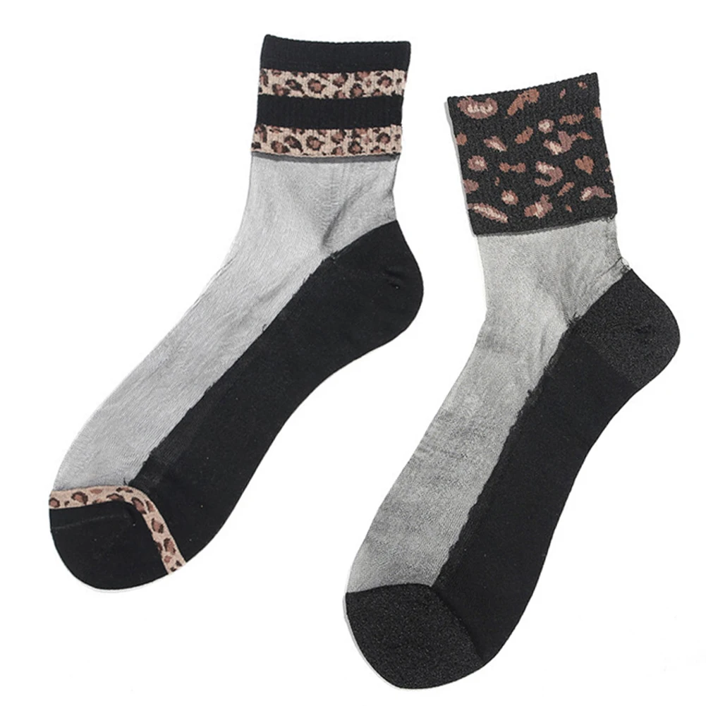 Модные леопардовые женские летние ультратонкие прозрачные эластичные носки по щиколотку
