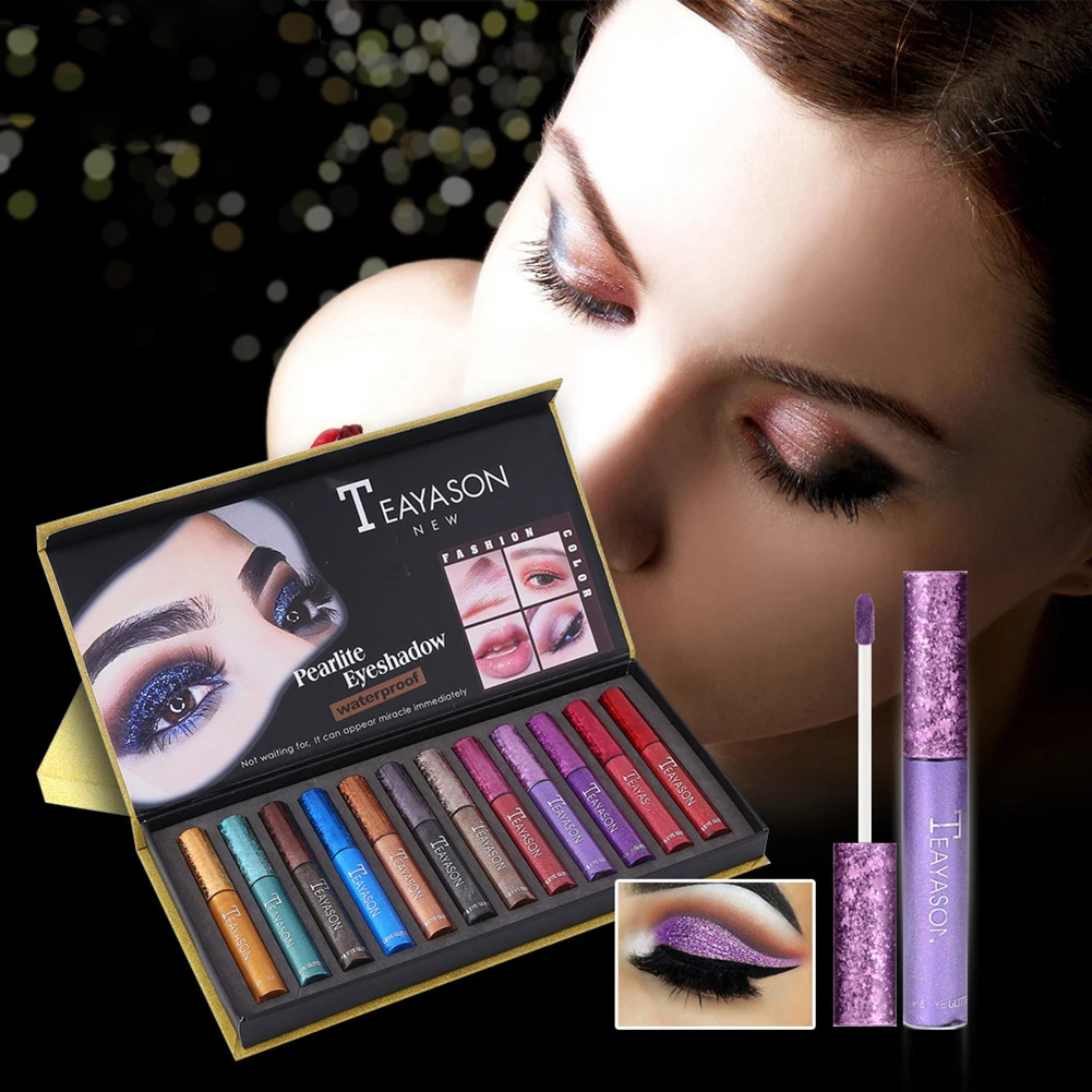 12 шт Блеск тени для глаз с металлическим отливом карандаш мерцающий водонепроницаемый стойкий макияж