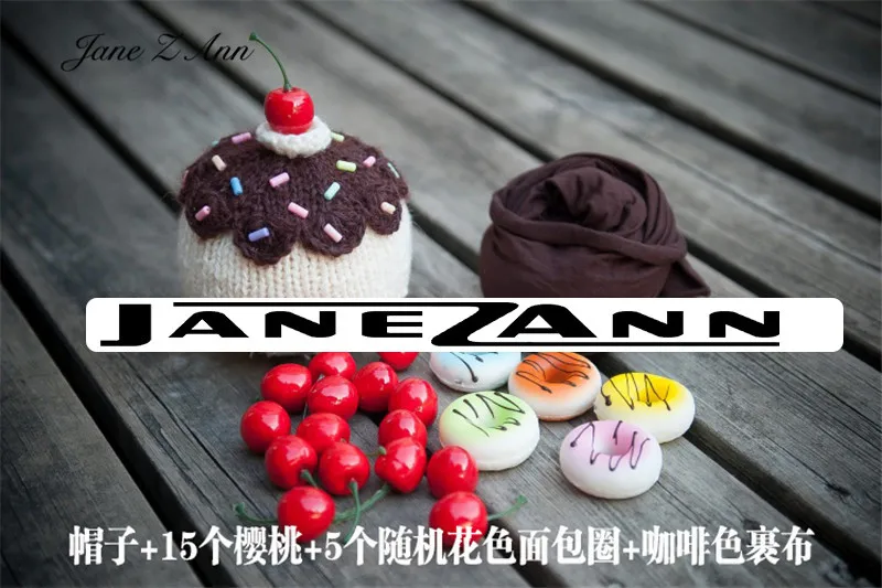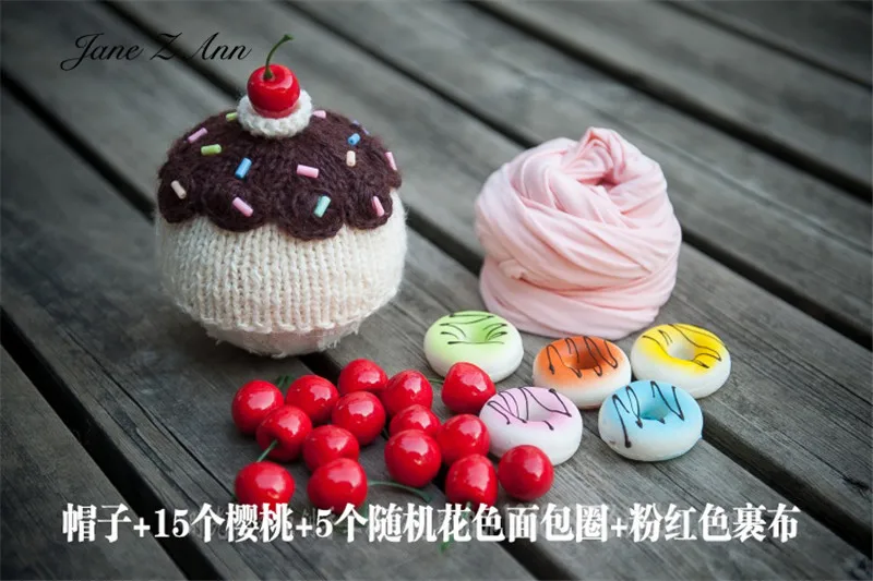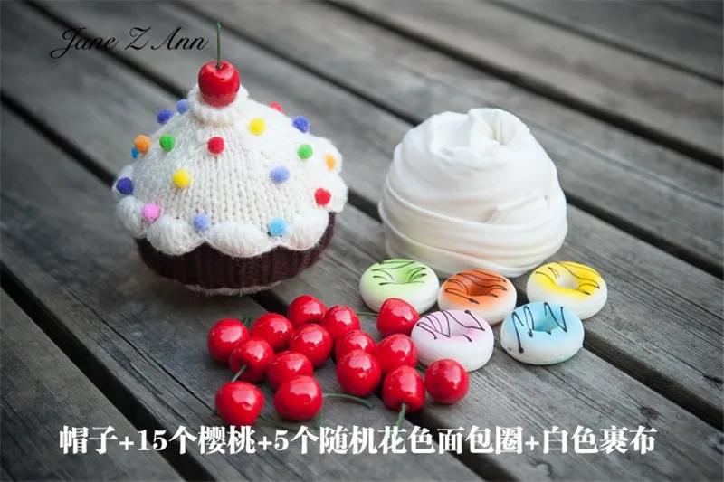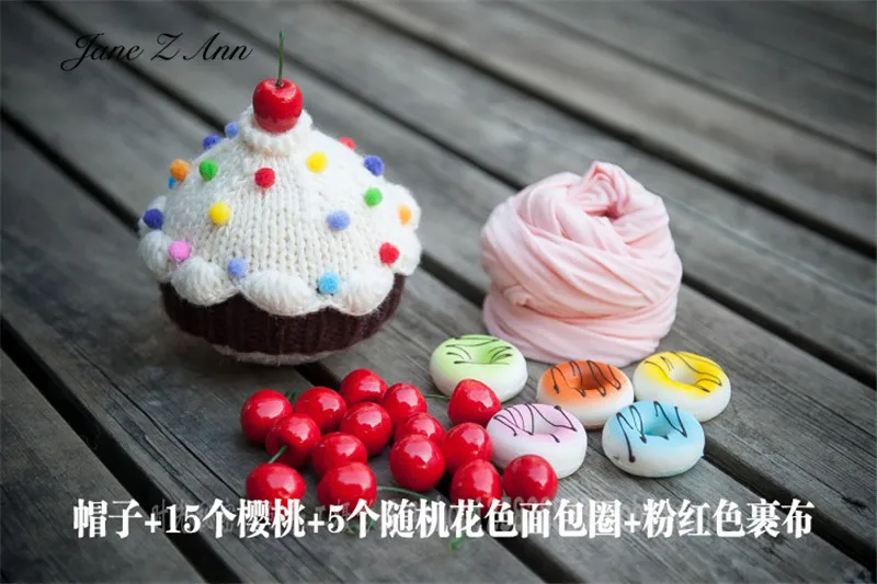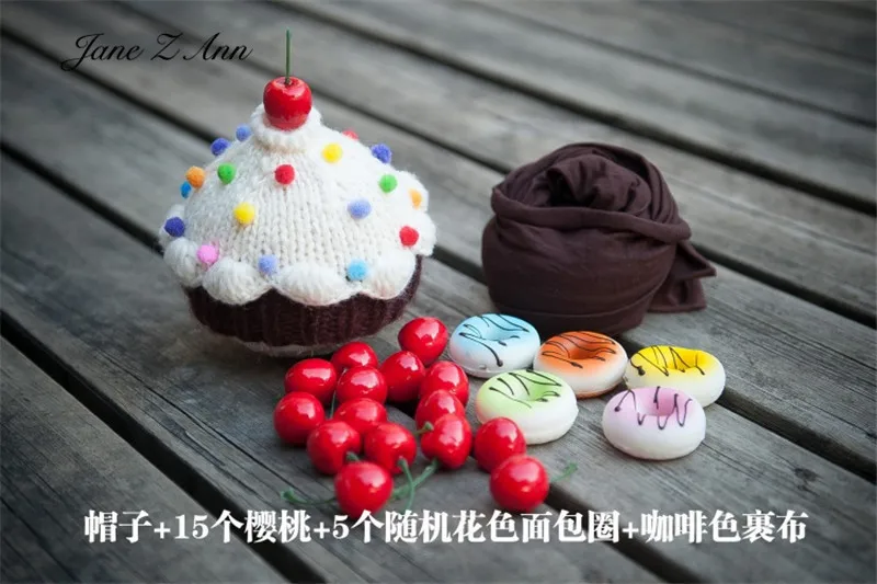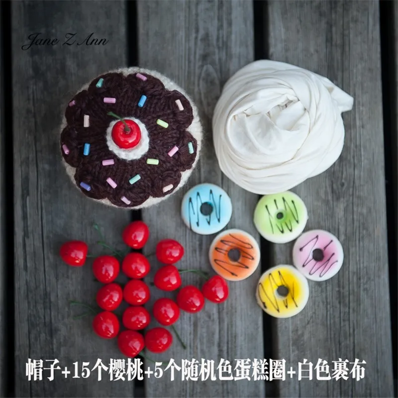 Jane Z Ann Cute Newborn photo props baby cake theme costume doughnut hat cherry prop wrap studio shooting accessories