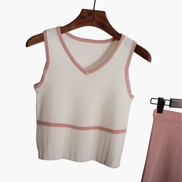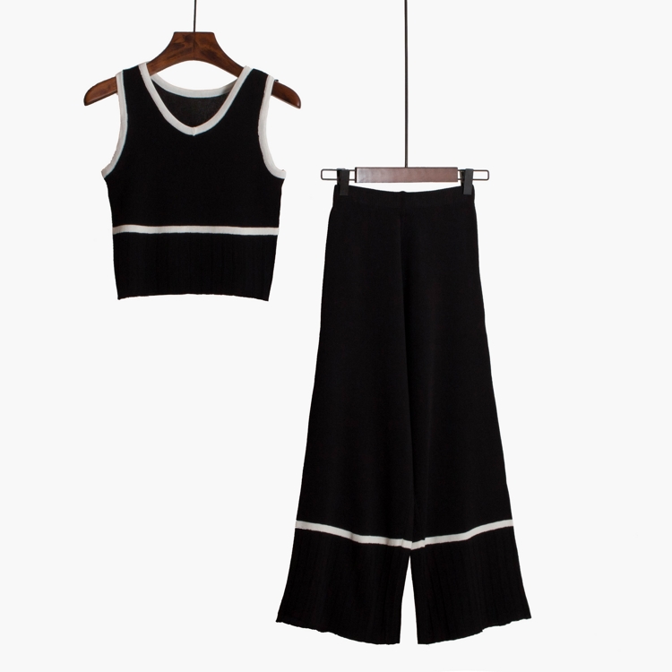 England Style Summer 2019 Women Jumper Tops+ Knitted Wide Leg Pants 2pcs Suits Casual Knitting Clothing Suits 4 Colors