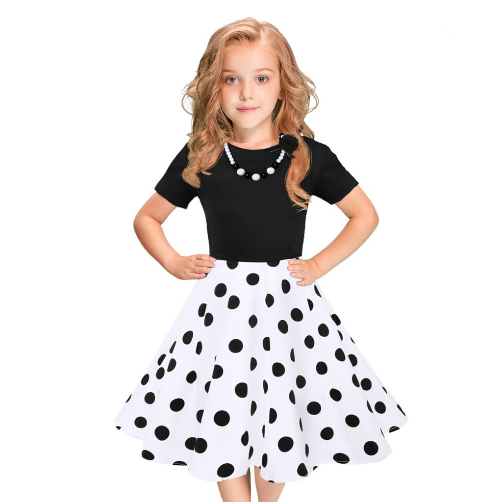Стильные винтажные платья для девочек: короткие рукава, длина до колен и облегающие. Пышная Расклешенная юбка идеально подходит для девочек.