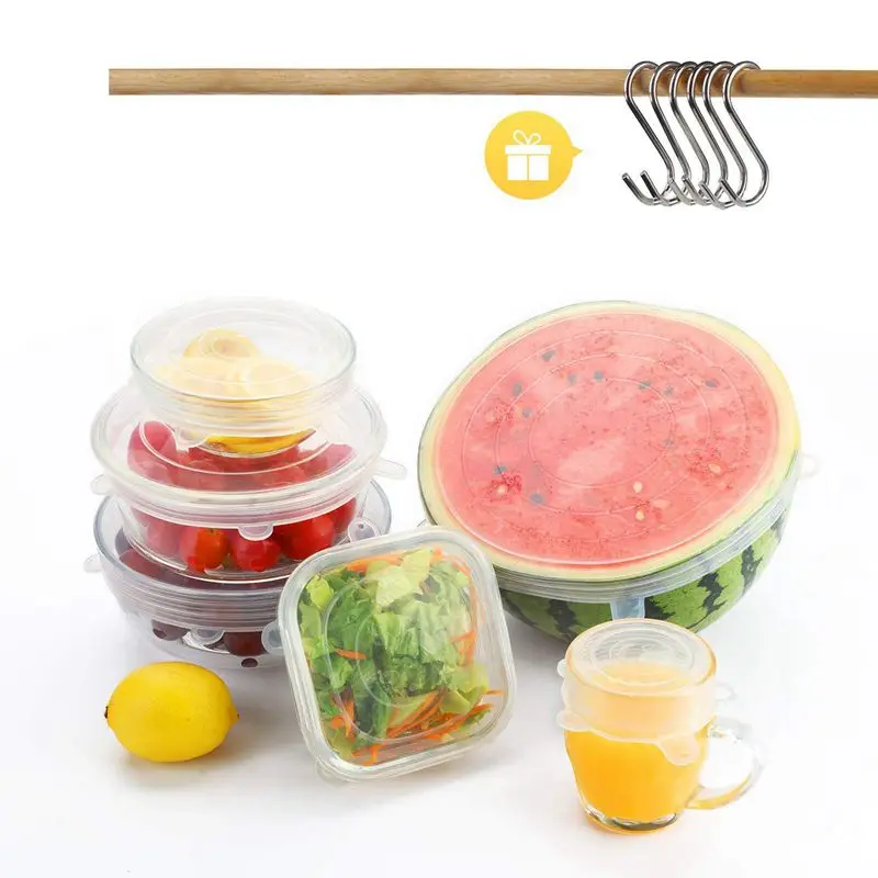 Silicone Stretch Lids 6 Pcs, Stretchable Reusable Food Covers with Six Sizes, Suction Lids for Containers, Plus 6 S-Shaped Kit