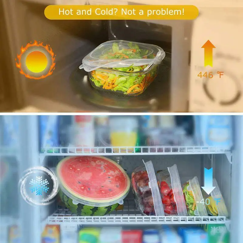 This stretchable lid is made of superior food-grade silicone material, that is healthy, non-toxic and environmentally friendly!