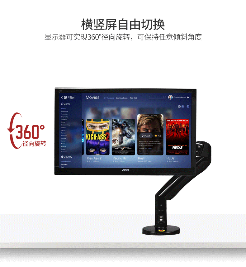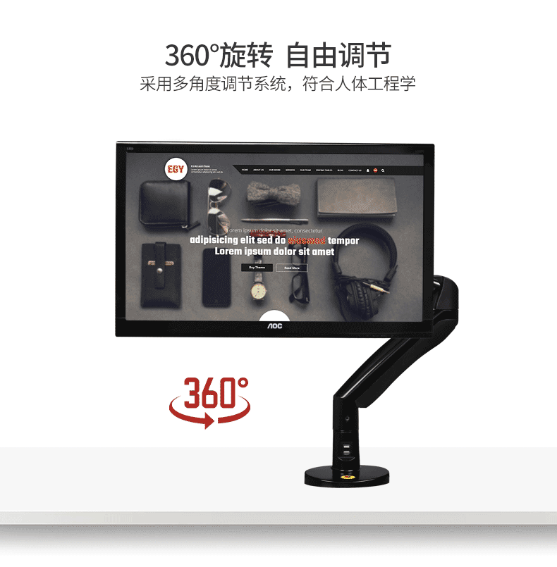 Вращающийся на 360 градусов Алюминиевый Газовый пружинный кронштейн 22 "-35", держатель для монитора с поворотным углом наклона, крепление для настольного монитора с двумя usb-портами