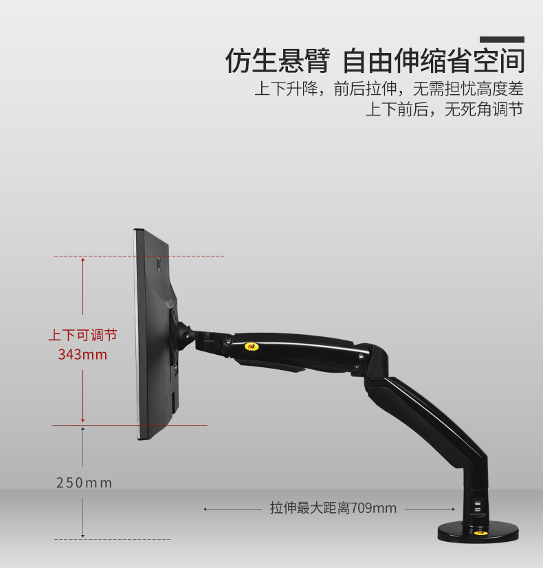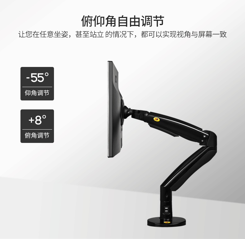Очень и ультра-гибкий механизм для изменения положения одним касанием Встроенная прочная и долговечная механическая пружина для вертикального движения. Удлинение и оттягивание руки для увеличения вертикального расстояния Поворотные руки на 360 ° и вращение на 360 ° с углом наклона для антибликового освещения Функция управления кабелем скрывает и передает кабели под рукой Максимальный эргономичный комфорт для снятия усталости глаз, шеи и спины. Продвижение хорошего самочувствия и продукции в повседневной жизни и домашних развлечений. Импровизированная рабочая станция с сиденьем и без дорогих регулируемых по высоте столов или стульев. Спроектировано как в зажатой кромке, так и в втулке, простой и простой в установке, без усилий. Литой алюминиевый сплав с тончайшей полированной и хромированной поверхностью или покрытием черного цвета Цвет: черный и белый Технические характеристики :>>> Эргономическая Интерактивная рабочая станция с газовой стойкой Подходит для размеров экрана 22-35” Диапазон нагрузки: 6,6-19,8 фунтов (на возраст от 3 до 9 лет, (кг): Расстояние до правого пути 13,6 ” (345 мм) 360 ° Поворотная. Удлинение и вытягивание 21,3 ”до 25,3” (543 - 643 мм). Интерфейс VESA 75x75 до 100x100 мм, Вращение на 360 ° с углом наклона от + 8 ° до-55 ° Встроенный 2X USB адаптер.
